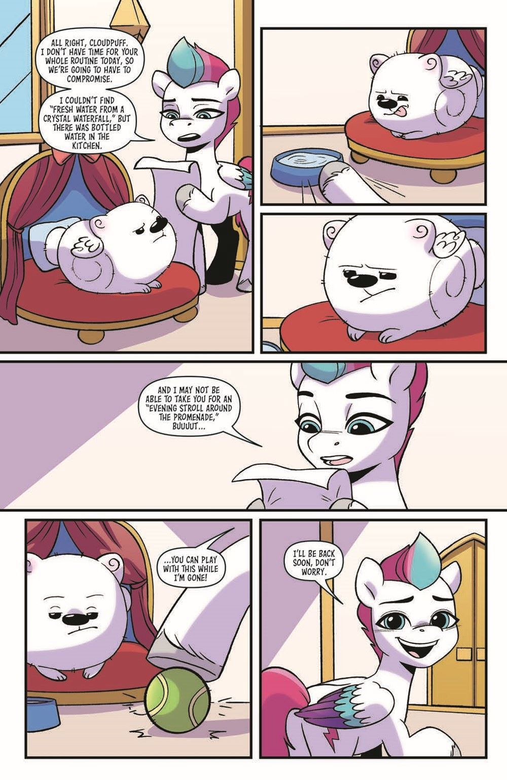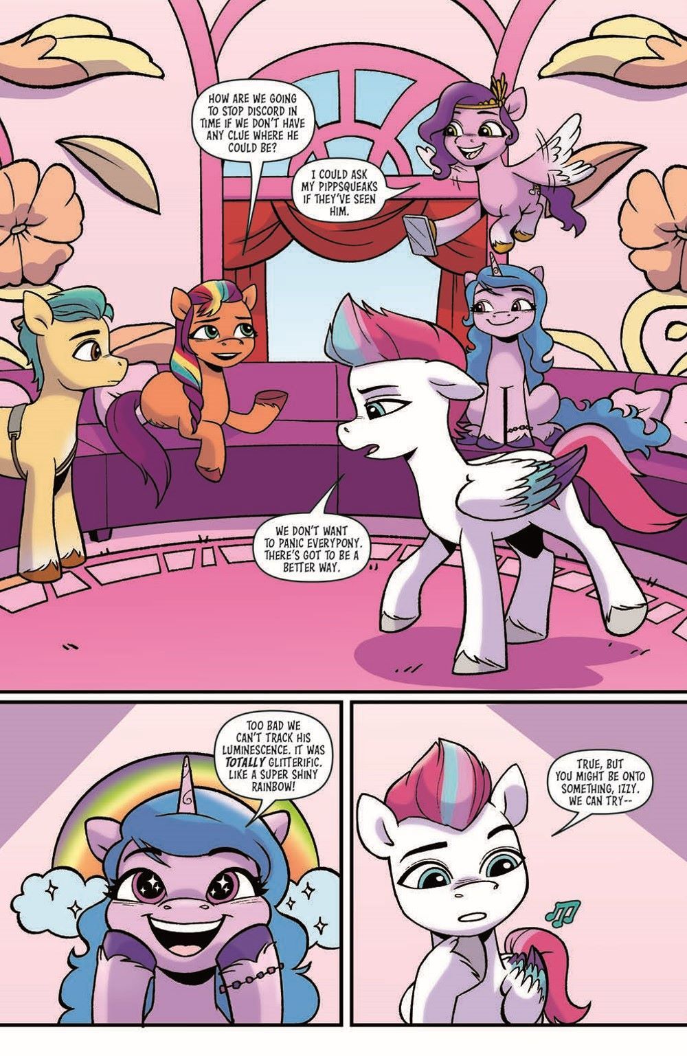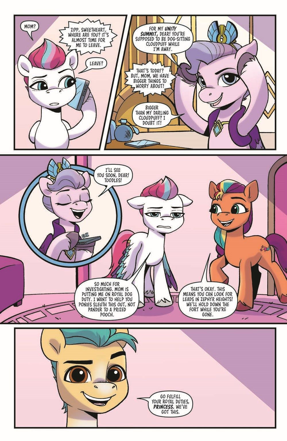 With Discord on the loose, Izzy, Sunny, and Pipp hunker down to look for clues! And Detective Zipp is on the case, too, right? Well...not when Queen Haven is away at a royal conference and needs a babysitter for her beloved Cloudpuff. But Zipp ends up pulling double duty when Cloudpuff goes missing, too! Enlisting Hitch and his critter-whispering prowess, Zipp and Hitch set out to find Cloudpuff before Queen Haven returns. And hopefully dig up a clue or two on Discord while they're at it.
