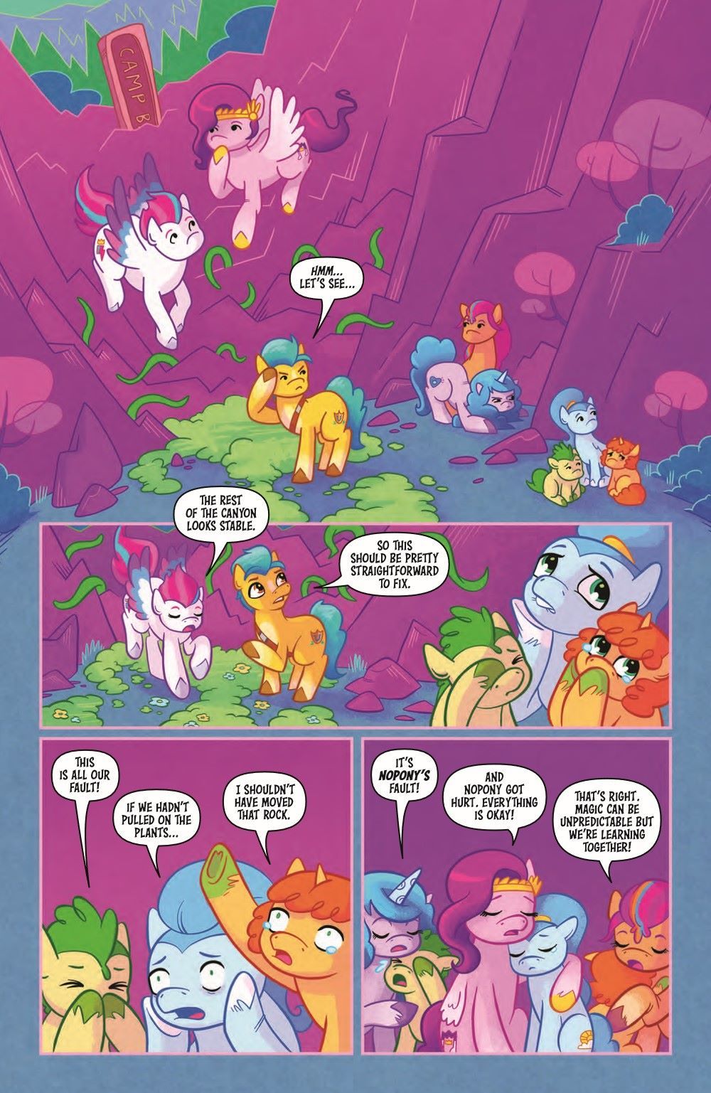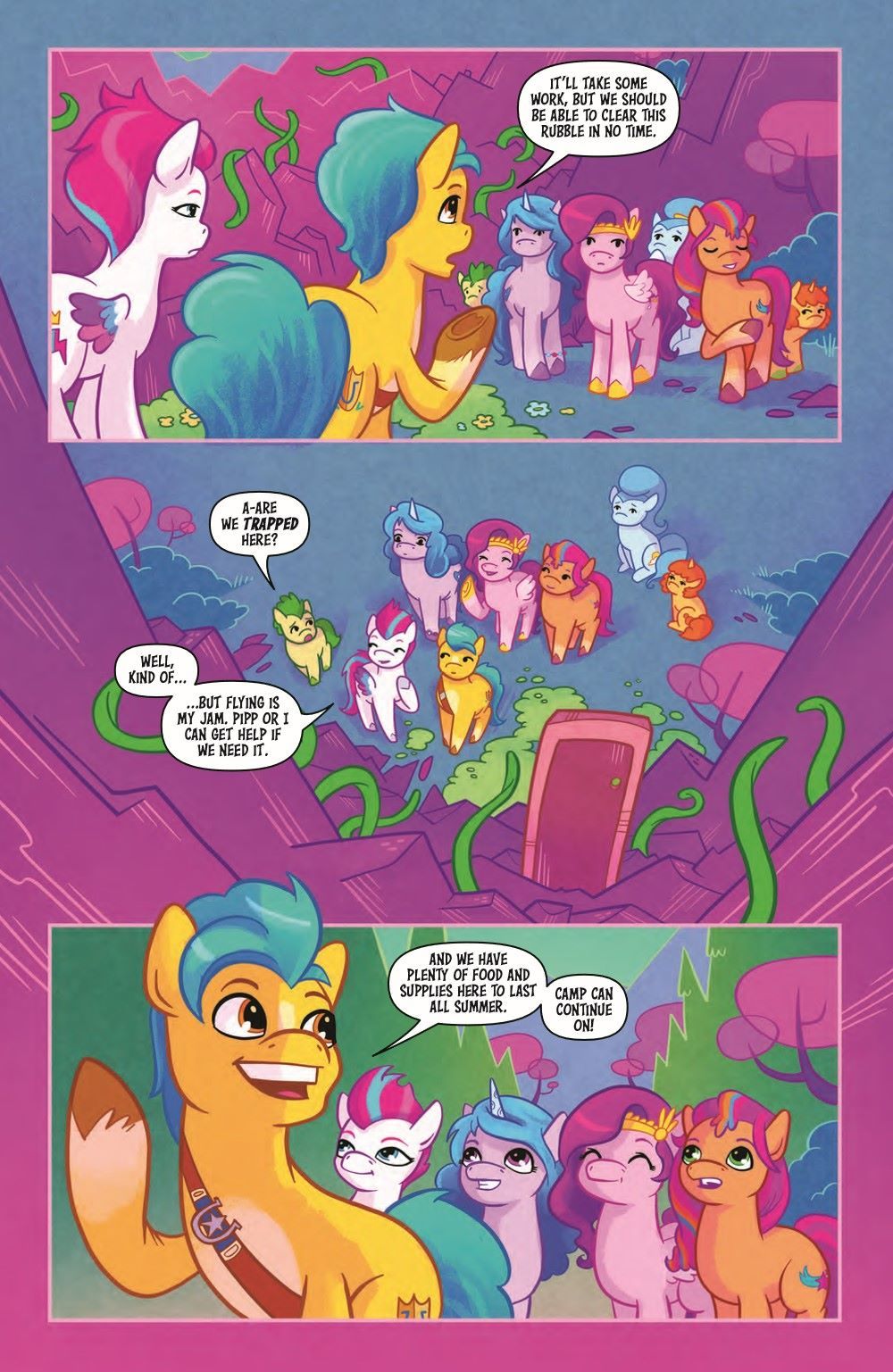 The campers are going to be spending s'more time together because... they're trapped! Turns out, a lot can go wrong when young ponies are learning to use their magic. But not to worry! Camp director Hitch will make sure the entrance is clear and that everypony still has time for arts and crafts. And the roaring you hear totally isn't a mysterious and possibly dangerous oversized bipedal creature...nope!