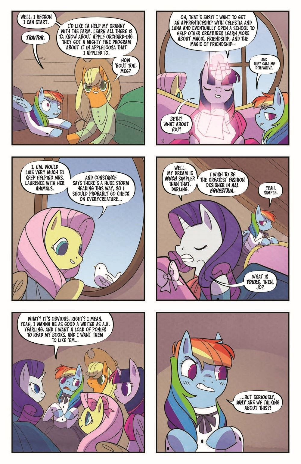 Spring is finally here, and with it comes challenges for the Little Fillies. Sickness, departures, and, worst of all, a bad haircut. Jo struggles to remain hopeful with all the changes, but she knows a good story requires development. It would just be nice if every pony could stay the same and everything would go back to normal!