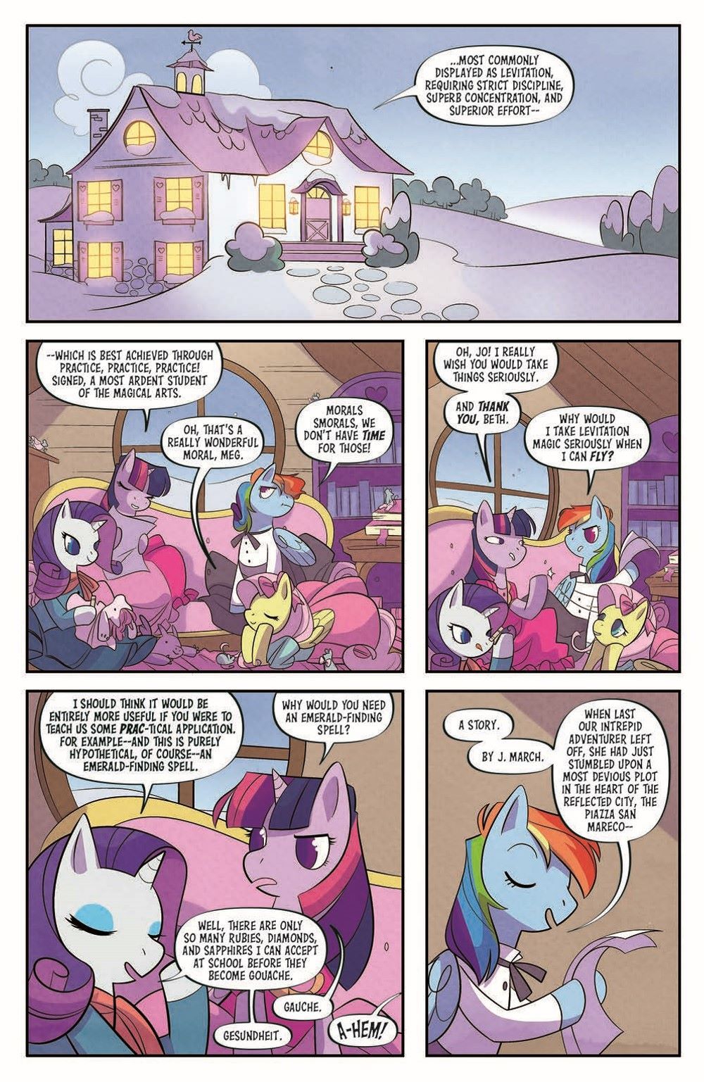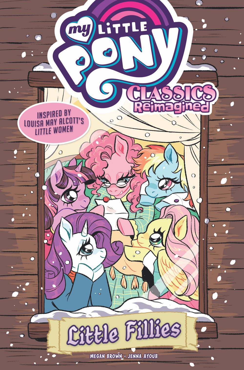 Little Women meets My Little Pony in this new graphic novel interpretation of the literary classic about love, life, and sisterhood. Rainbow Dash, Twilight Sparkle, Fluttershy, and Rarity appear as the March sisters, who harbor dreams of life beyond Broncord, Massahoofetts.