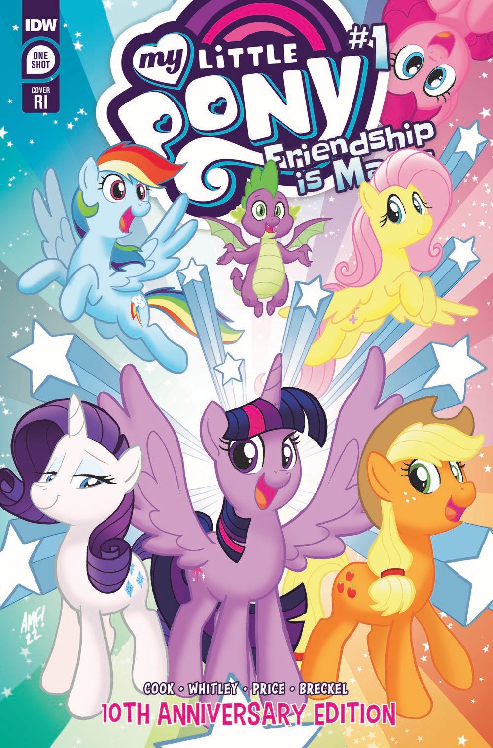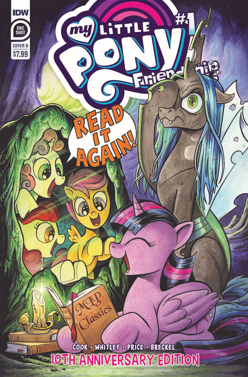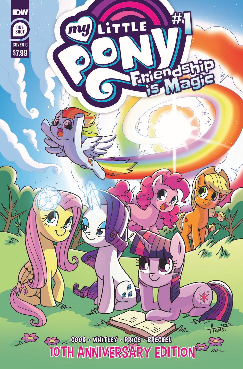 Celebrate ten years of My Little Pony: Friendship is Magic by revisiting the issue that started it all! Ever since their comic debut, Twilight Sparkle, Applejack, Pinkie Pie, Rainbow Dash, Fluttershy, and Rarity have been spreading messages of friendship, magic, and fun! Join them at the very beginning of their decade-long journey in My Little Pony: Friendship is Magic—10th Anniversary Edition. Reprints #1 and a gallery of all eight original covers. Plus, an interview with My Little Pony artist and writer Tony Fleecs and an all-new short from Jeremy Whitley.