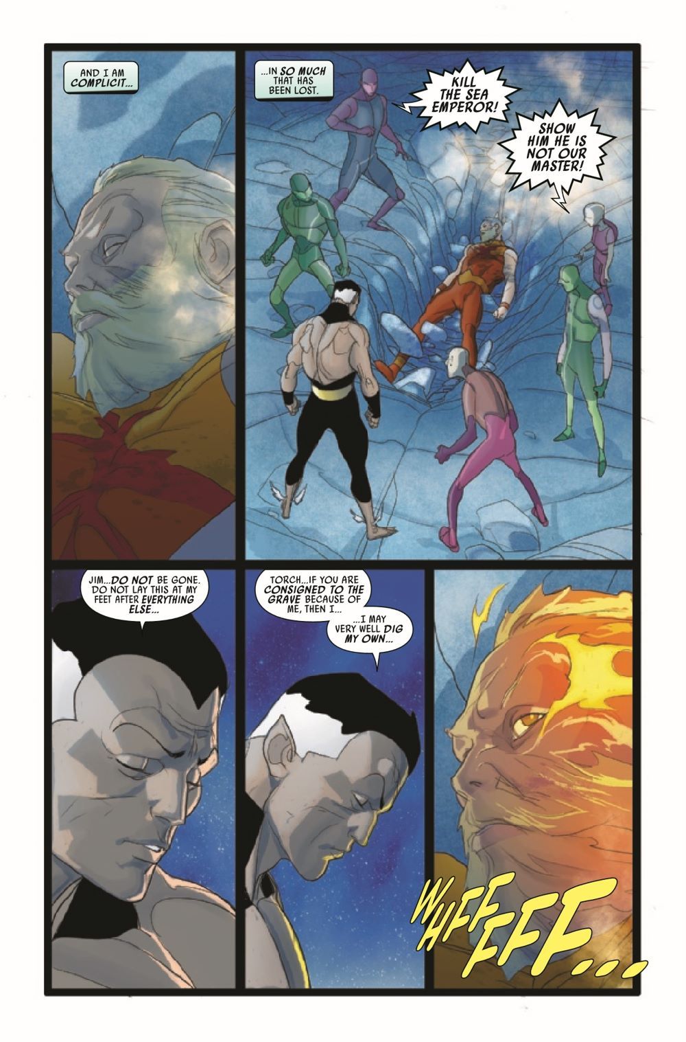 Who will survive in this fallen world? Who will rebuild it? Atlantis? The machines? A long-suffering humankind? Namor faces off against the Original Human Torch one last time…and then his own underwater empire. In the end, will anything be left to rule on these conquered shores?