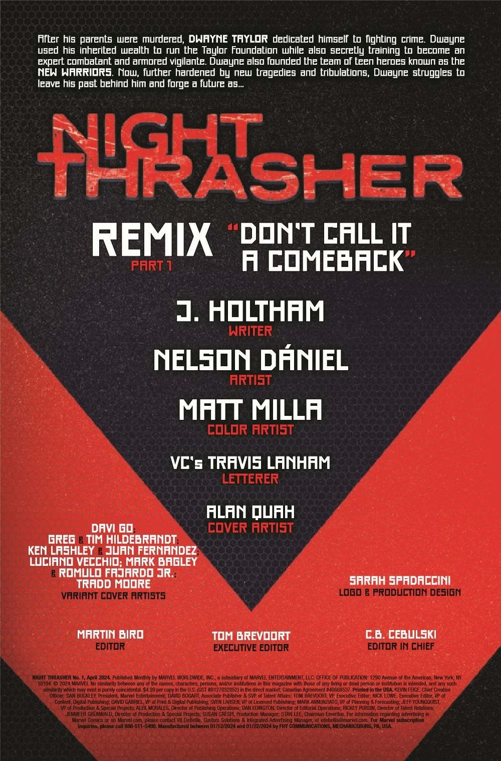 It's time to thrash the night! The death of a loved one draws Dwayne Taylor back to New York City, though his days as NIGHT THRASHER are long over. But Dwayne finds the past difficult to outrun when SILHOUETTE, his ex-teammate from the NEW WARRIORS, seeks his help against a new criminal called THE O.G. And the mystery of the O.G.'s true identity and what's to come will change Night Thrasher's legacy forever! Don't miss this bold new direction for a cult classic character who is leaving the '90s behind him!