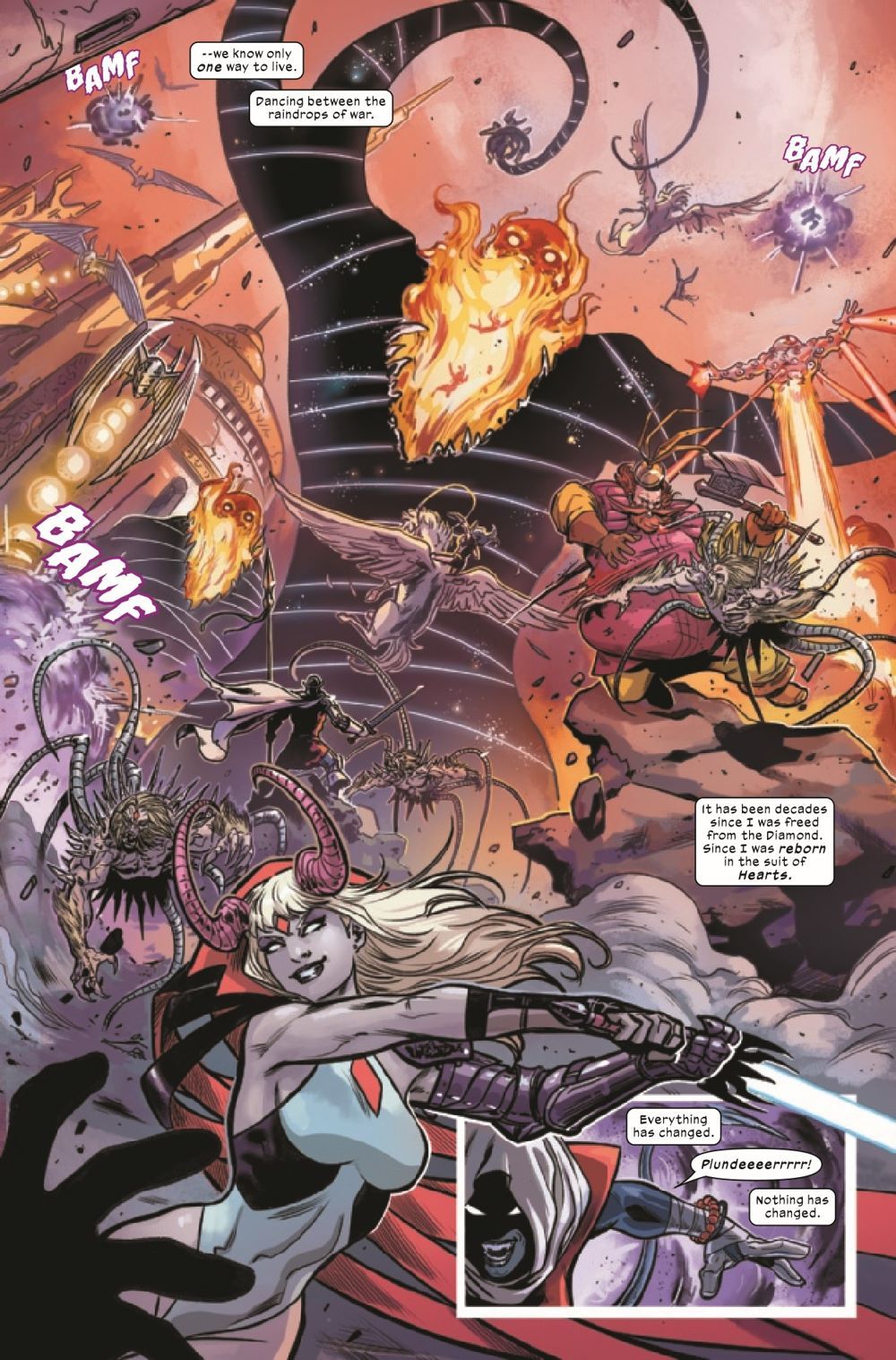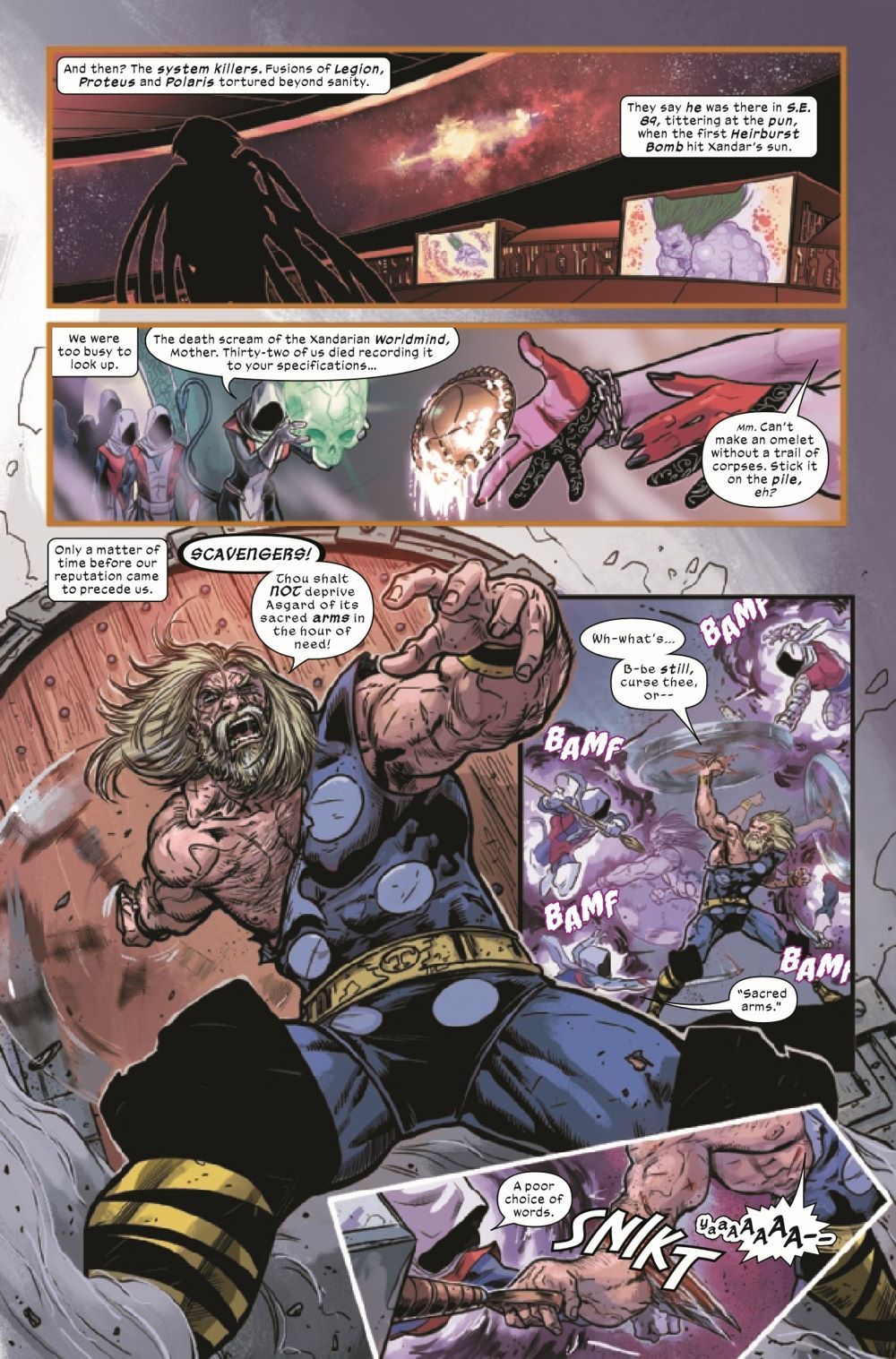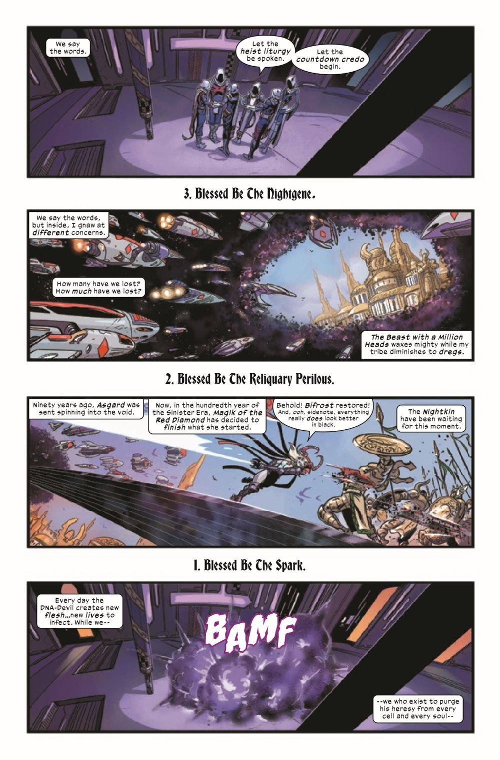 100 YEARS SINCE THE SINISTER ERA BEGAN... …WAGNERINE and her gene-spliced assassins are HOLY THIEVES, servants to a cosmic cult. Let the HEIST LITURGY be spoken! Loot the ashes of Asgard! Raid the tombs of Otherworld! Pick the pockets of the Marvel Universe and build the sacred weapon! And let us bear witness to the final fate of the First...the fallen fiend who was once known as NIGHTCRAWLER.