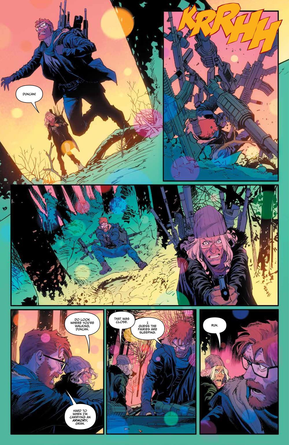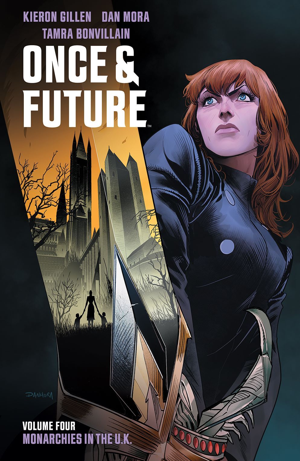 Bridgette, Duncan, and Rose, – along with the entirety of Britain – are dragged into the Otherworld. It's a land of predatory monsters and things seem like they can't get any worse. Of course they can. A rival king rises to confront Arthur, plunging the land into civil war... and both pursue Bridgette, Duncan and Rose as they travel across the land, desperately trying to find a way to return Britain to its senses... New York Times bestselling writer Kieron Gillen joins Russ Manning Award winning artist Dan Mora, and colorist Tamra Bonvillain present the next chapter in the Hugo and Eisner Award nominated series. Collects Once & Future #19-24.