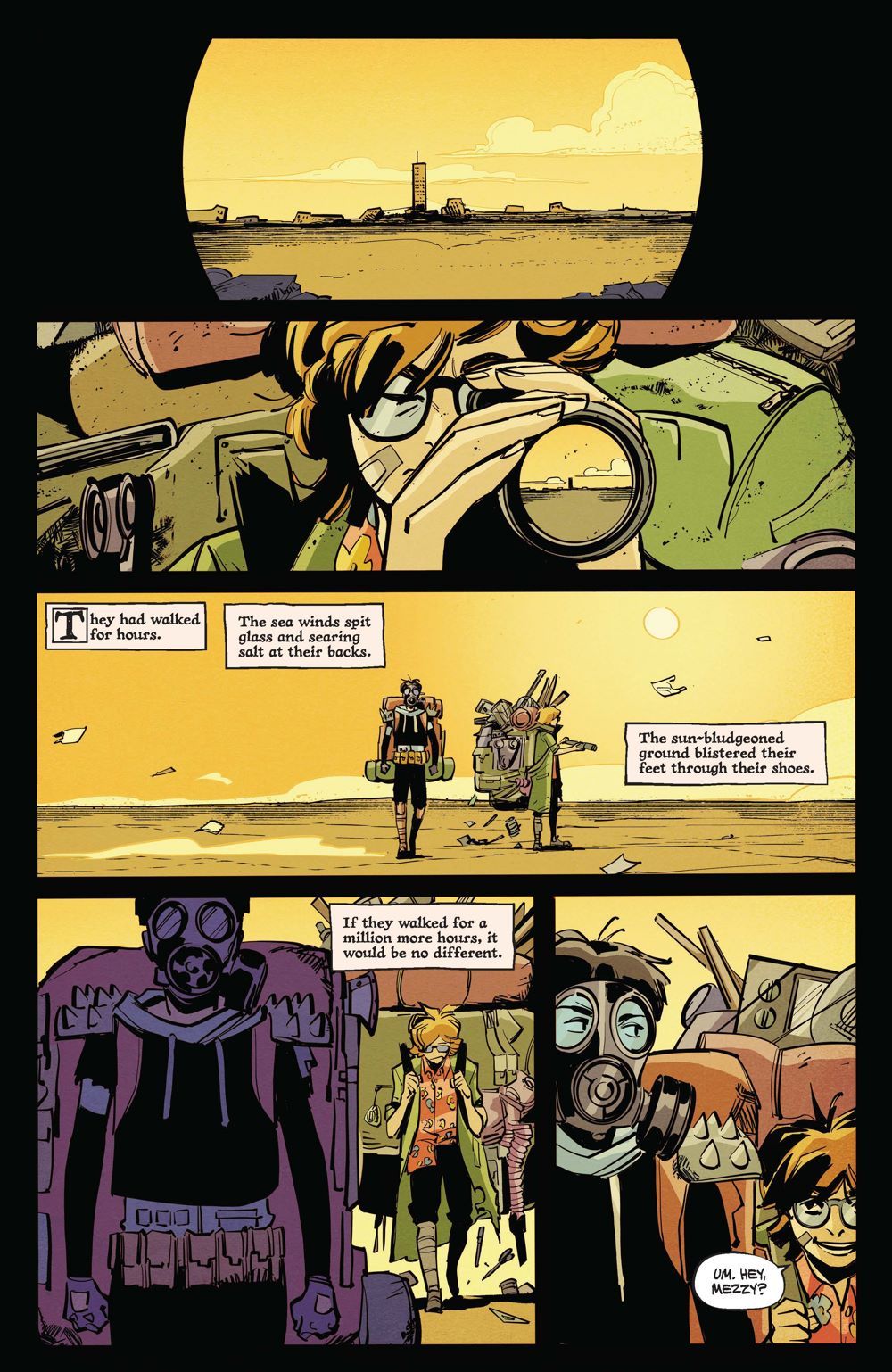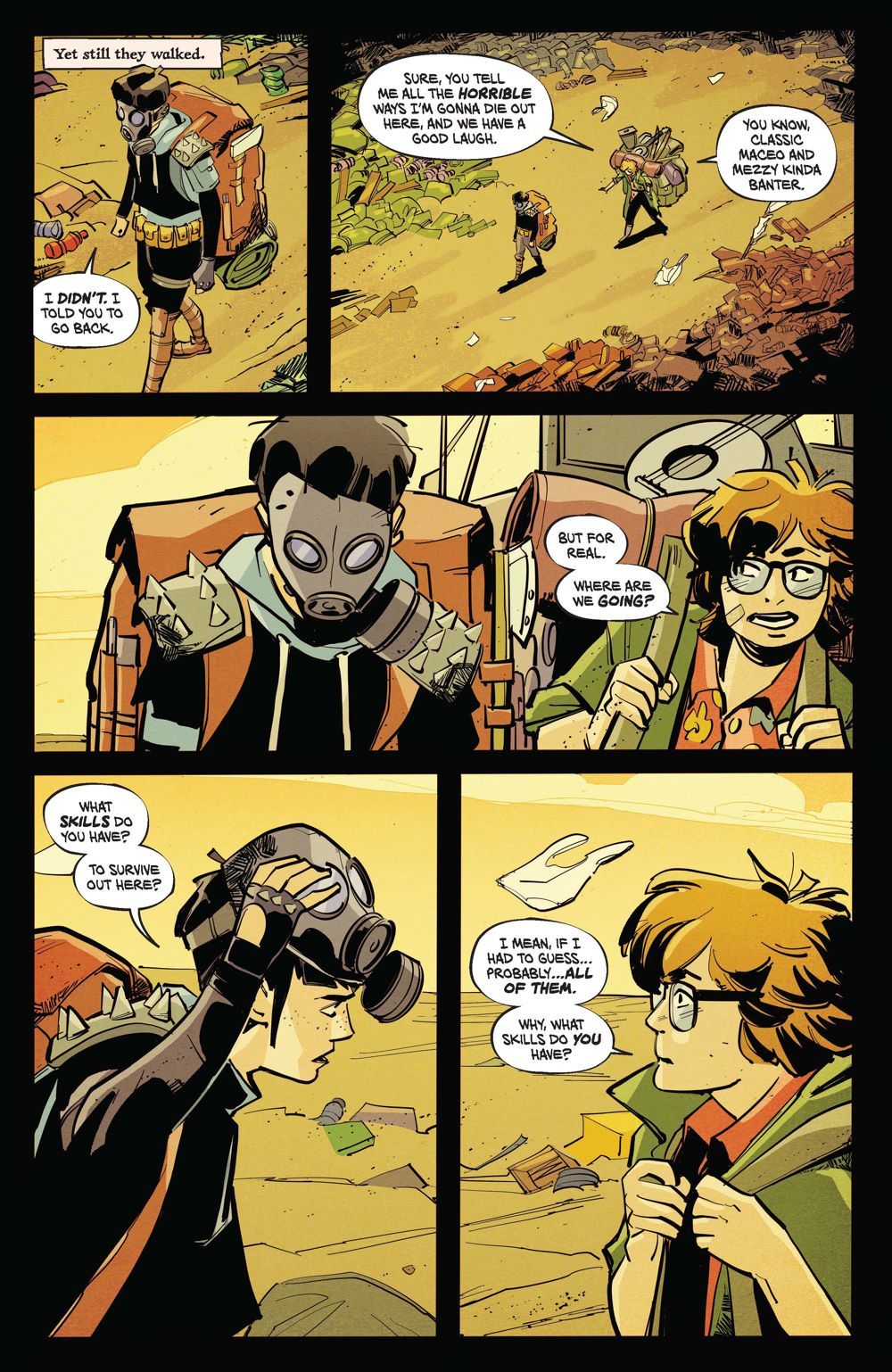 Jason Aaron and Alexandre Tefenkgi's fable of a bleak future continues in Maceo and Mezzy's childhood years, with nothing but Mezzy's guidebook and her skills as a wastelander to get them through their dangerous, post-apocalyptic journey. As time passes and they endure the horrors of plastic tornadoes and frozen sludge, Maceo proves to be more than just a burden, and they make a connection where none seemed possible at first. But to their unexpected peril, they might not be as alone as they thought…