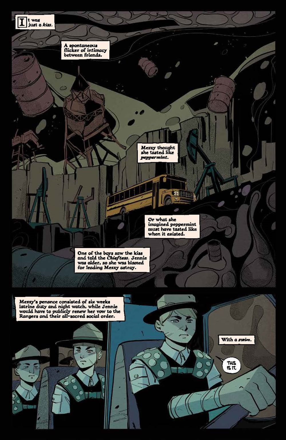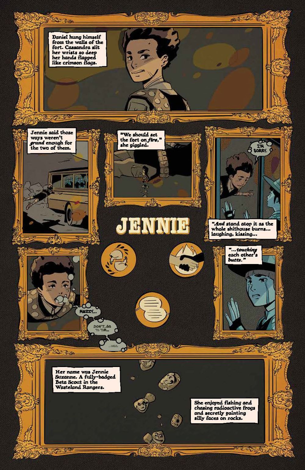 The Apocalympics begin, but it isn't fun and games–the Wasteland Rangers won't let Maceo, a rival suitor for Mezzy, go without competing to the death! The stakes are high as Mezzy's close connection with The Rangers' Chieftess is revealed and Maceo seems out of his league. But there's more than one way to save someone…