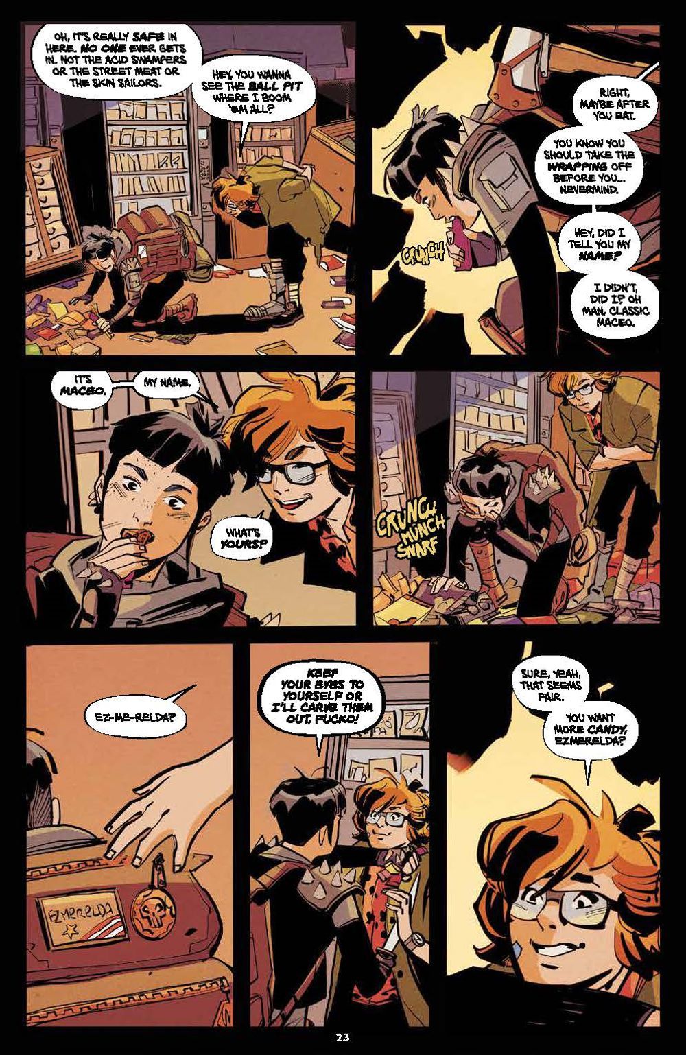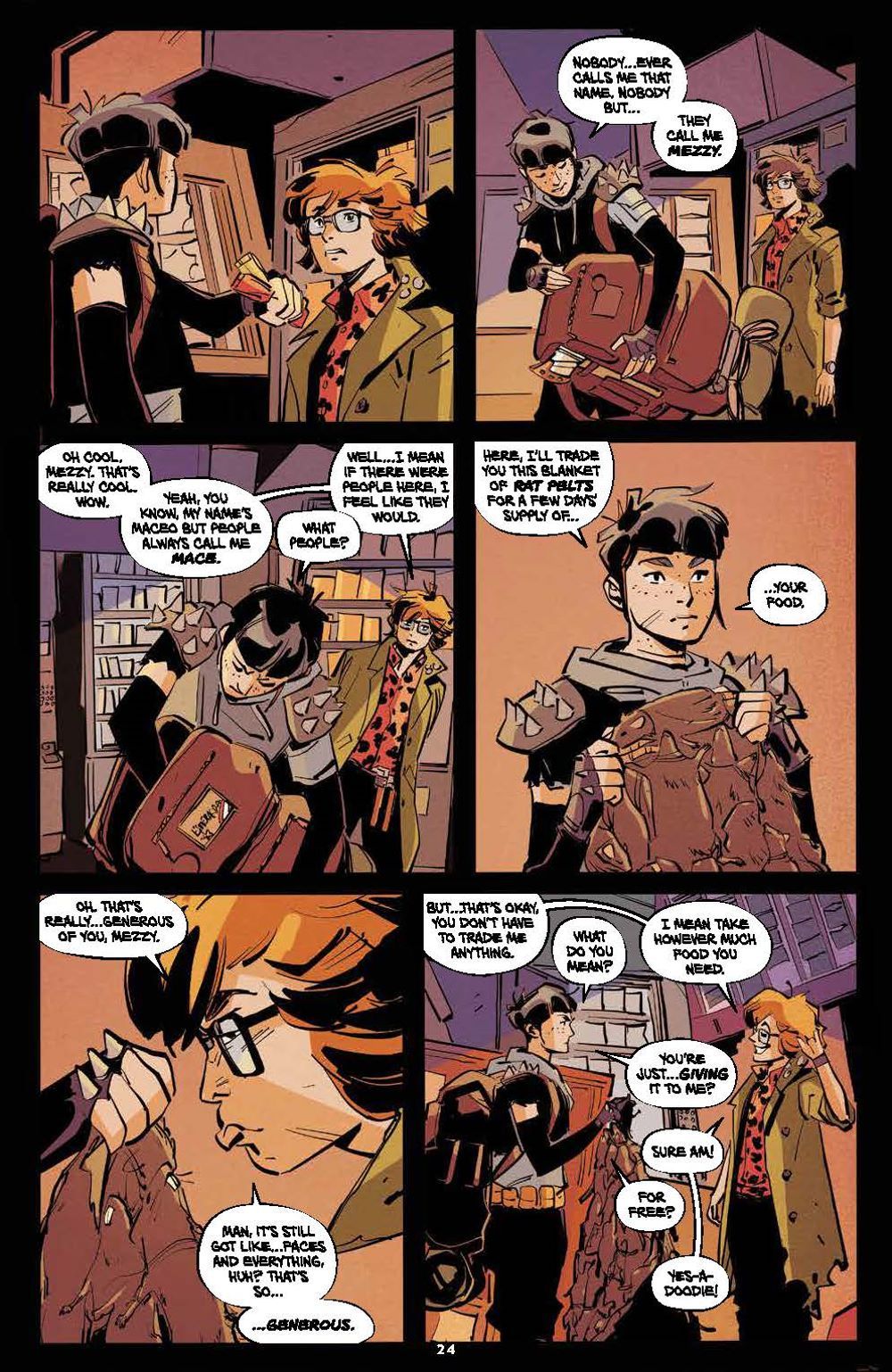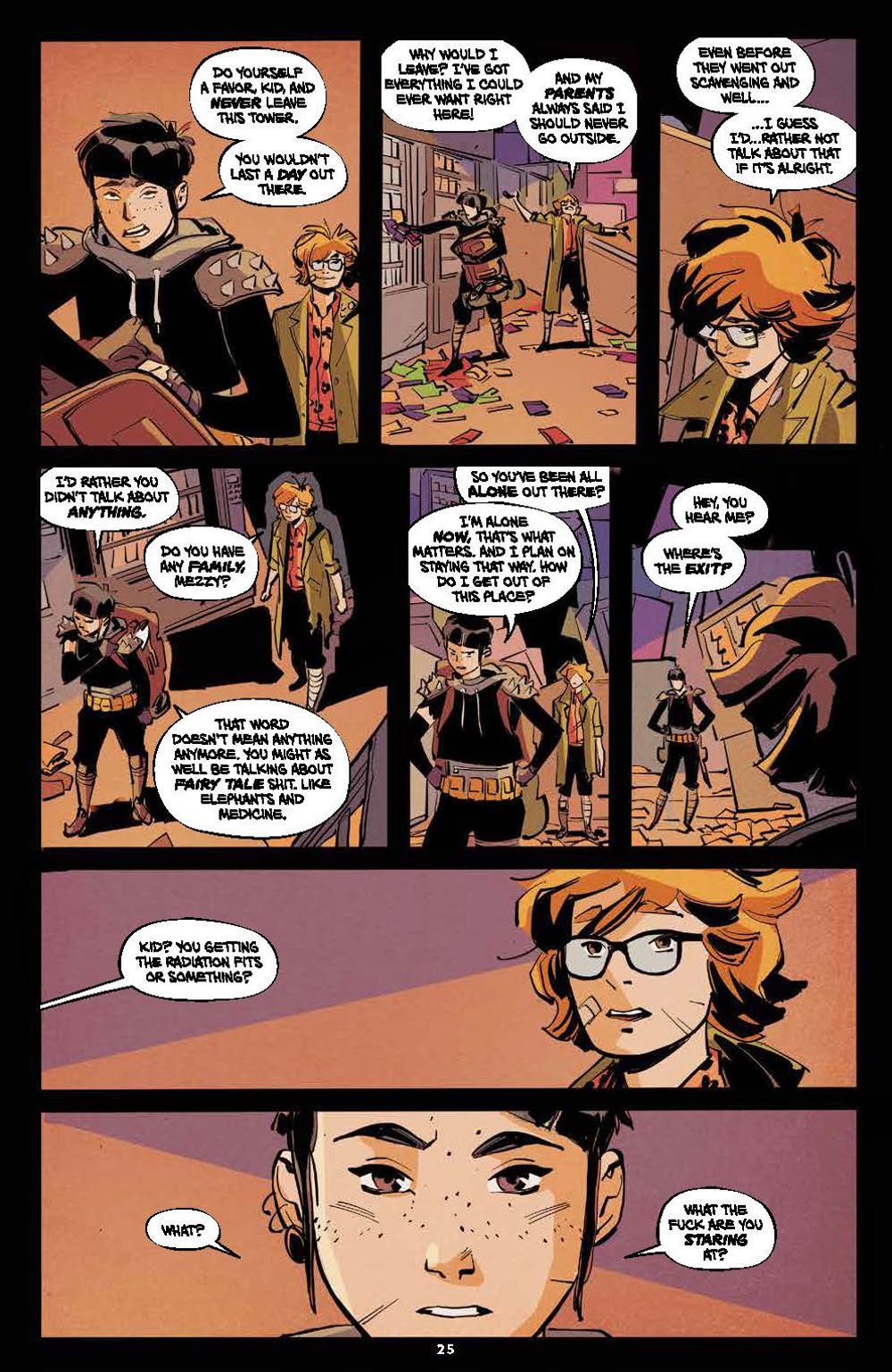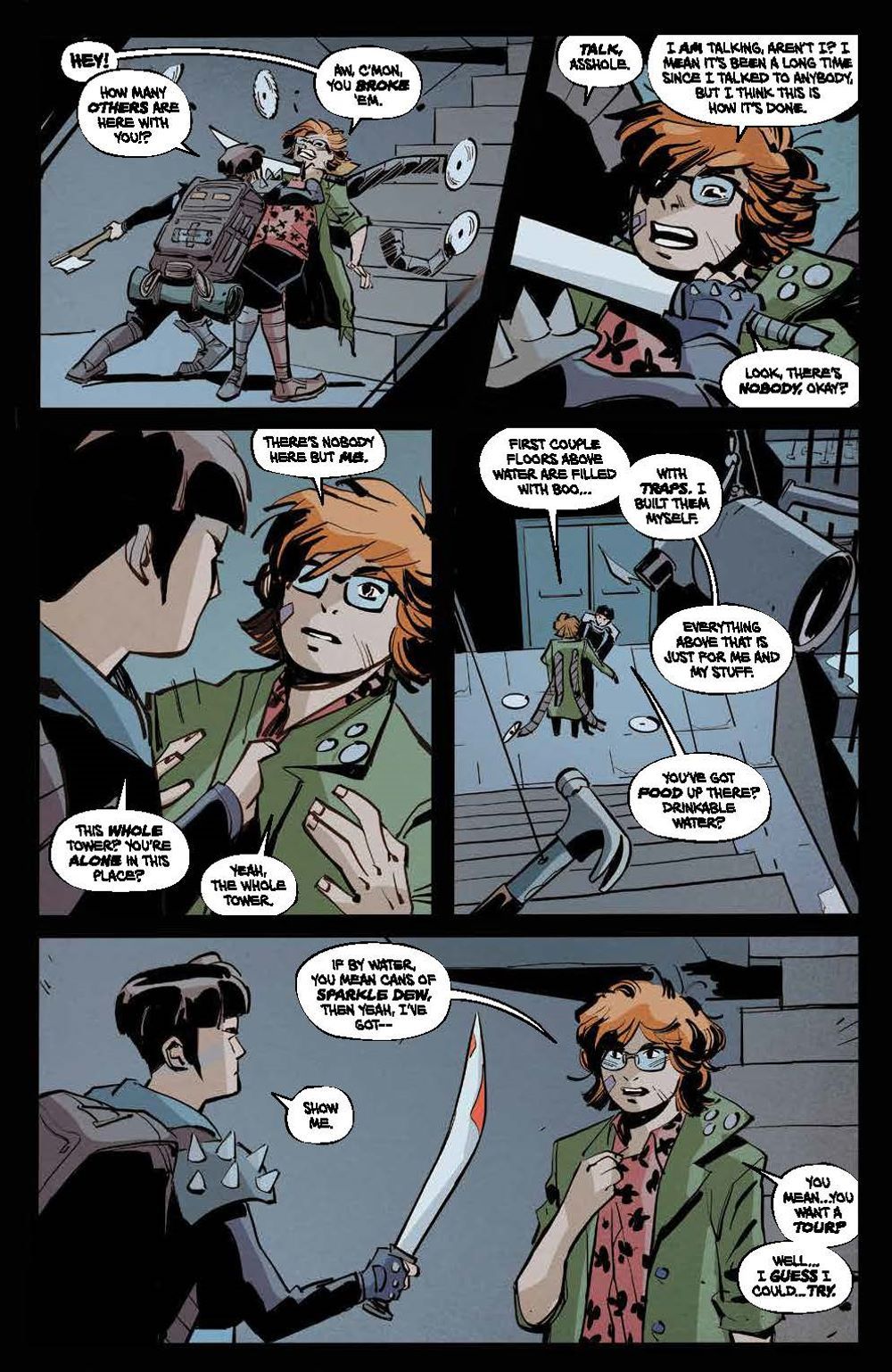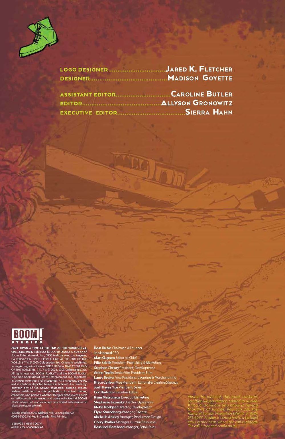 In this decades spanning post-apocalyptic tale, Maceo and Mezzy have never met anyone like each other, and they'll need all the help they can get to survive a planet ravaged by environmental catastrophe. "Love in the Wasteland" kicks off the first arc of this epic trilogy that spans a lifetime as the dark mysteries of a ruined world and their own stark differences tear at the threads holding Mezzy and Maceo together. As they endure the horrors of plastic tornadoes and frozen sludge, Maceo proves to be more than just a burden, and they make an unlikely connection. But to their peril… they might not be as alone as they thought… New York Times bestselling, Eisner and Harvey Award-winning writer Jason Aaron (Thor, The Avengers, Southern Bastards) launches his most ambitious original series to date with three distinct artistic partners – Eisner Award-winning artist Alexandre Tefenkgi (The Good Asian), acclaimed artists Leila del Duca (Wonder Woman: Tempest Tossed, Sleepless), and Nick Dragotta (East of West, Ghost Cage) – to take on a vision of the end of the world that's brutal and nostalgic, whimsical and grounded… and ultimately, timeless. Collects Once Upon A Time At The End Of The World #1-5.