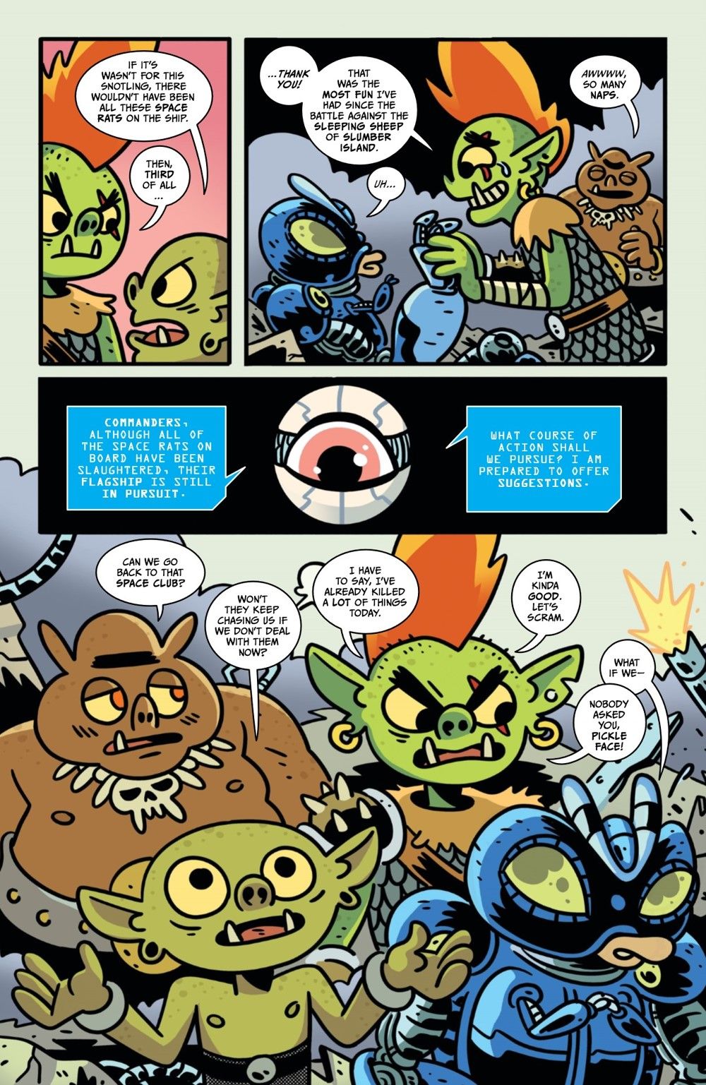 The first arc of Orcs in Space comes to an orcdacious conclusion! The orcs dive into a final battle with the Space Rats and Dash Blastoff––will the orcs prevail and survive their first battle with their second enemy, or have their mayhem-making ways finally caught up with them? It's Rat-slaying Time!