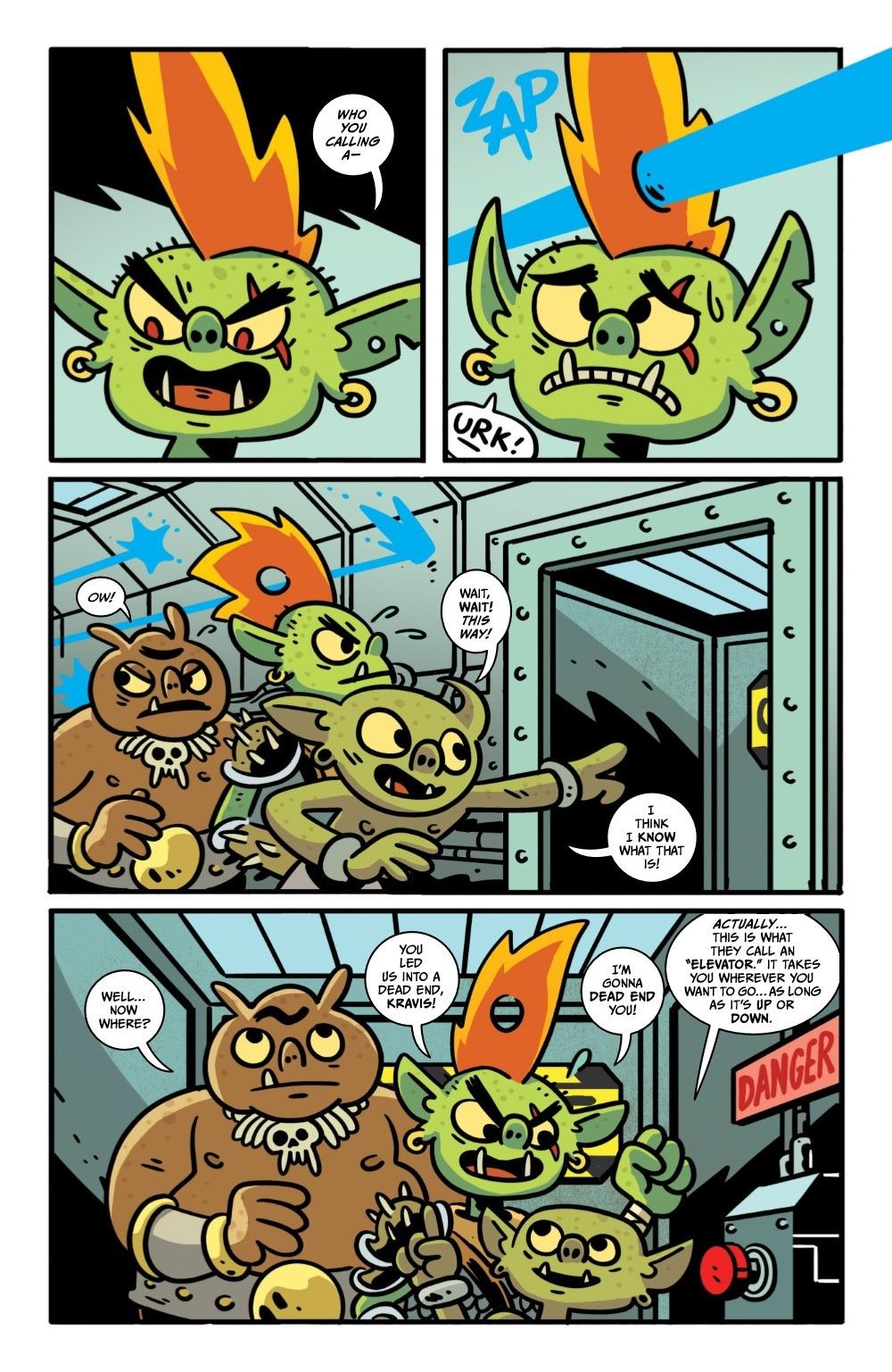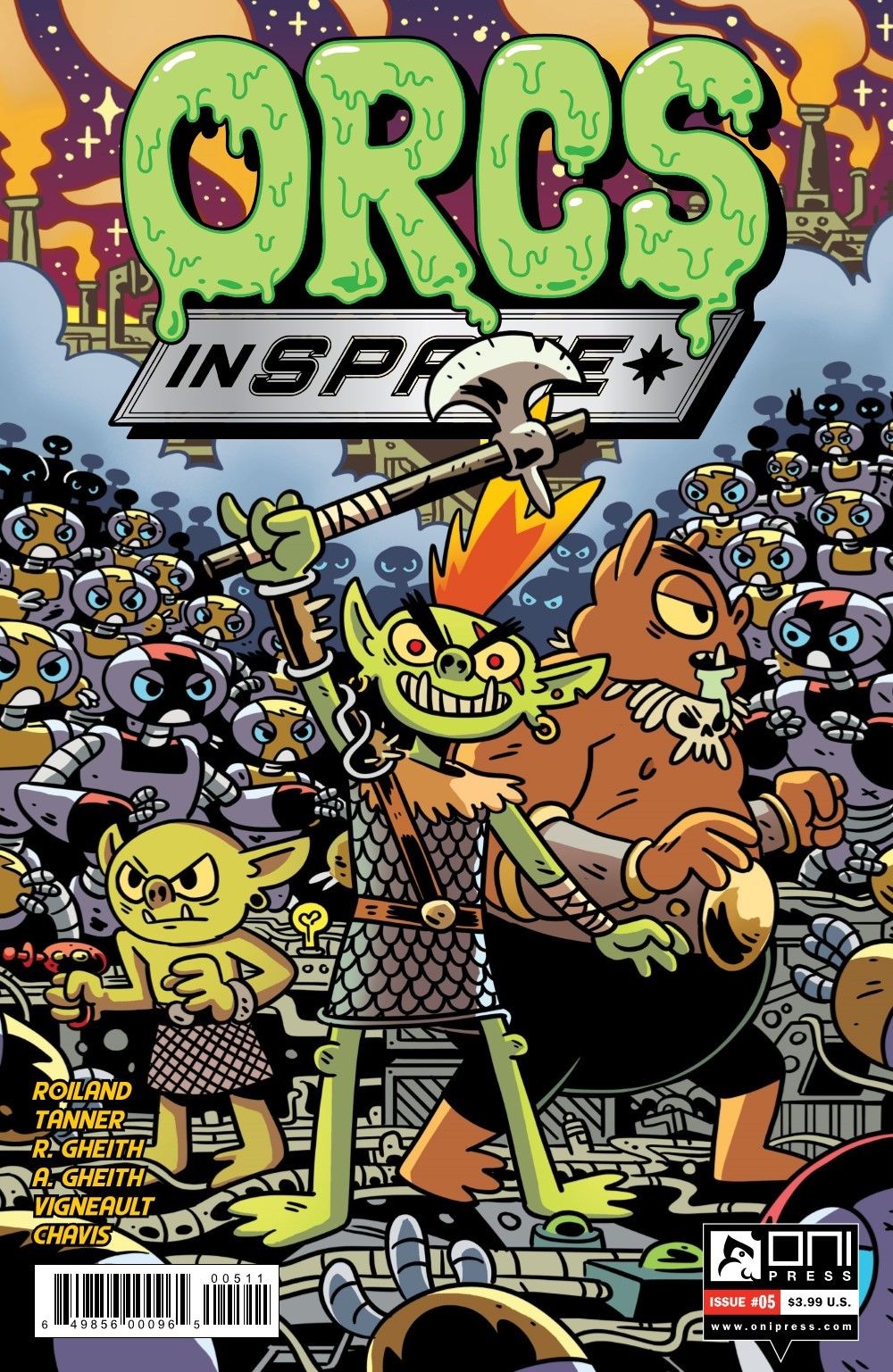 The orcs are…still in space! Gor, Mongtar, and Kravis go on a quest to infiltrate a shipyard guarded by a robot army to help their ship's AI, D.O.N.A., discover her origins. While exploring a scrap heap, they run into the Cyber-Scrapper, who offers to help––but is he friend or foe?