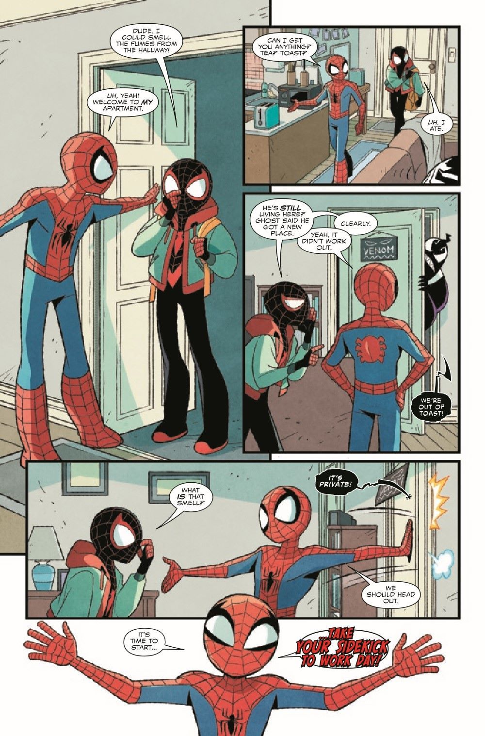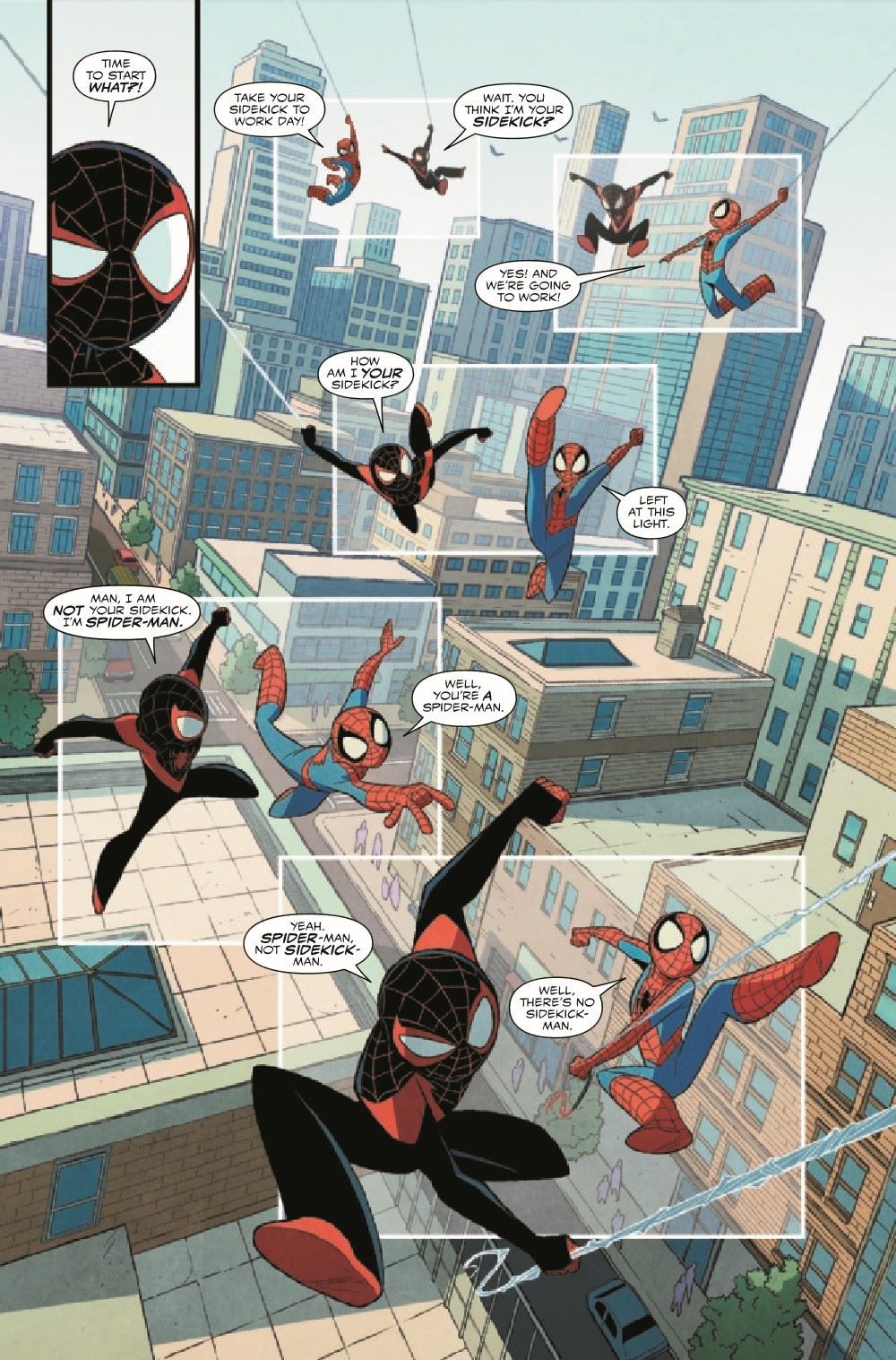 They're friends, heroes and…sidekicks? Peter has dragged Miles into Take Your Sidekick to Work Day, and Miles is not amused - they're both Spider-Man, after all! So when Peter makes a mistake that unleashes villainous shenanigans on New York City, it's up to Miles to save the day - and prove who's the true sidekick among the Spider-Men. Vita Ayala joins the fan-favorite team that brought you SPIDER-MAN & VENOM: DOUBLE TROUBLE and THOR & LOKI: DOUBLE TROUBLE for a brand-new adventure!