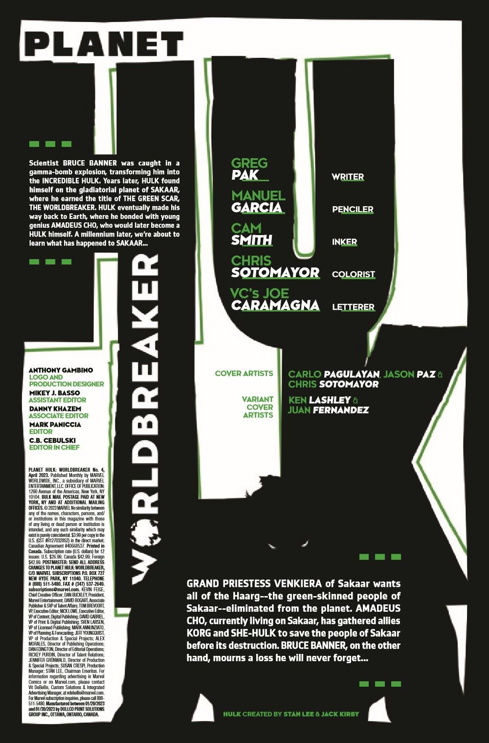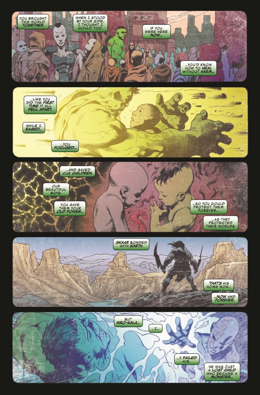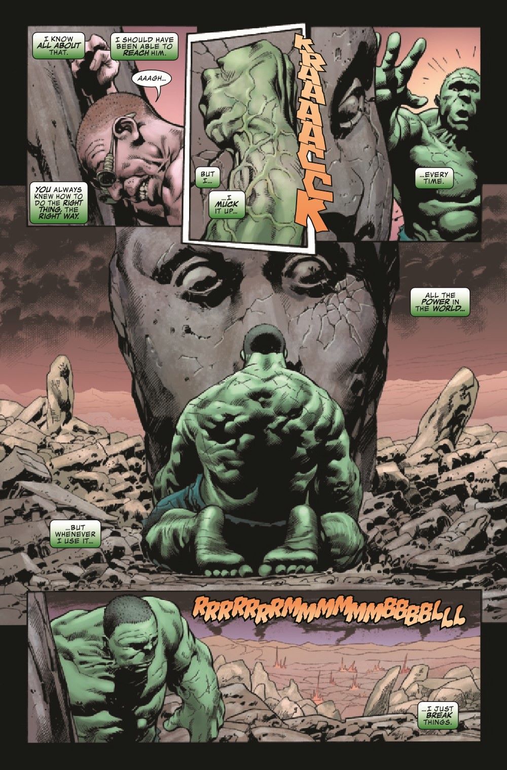 For hundreds of years, when cataclysm strikes, the people of Sakaar have desperately sought the help of the Green Scar. But what happens when you ask the Worldbreaker to help you unbreak the world? Our young heroine Tala is about to find out - and the answer strikes deep into the heart of Bruce Banner and the monster he still believes lies within.