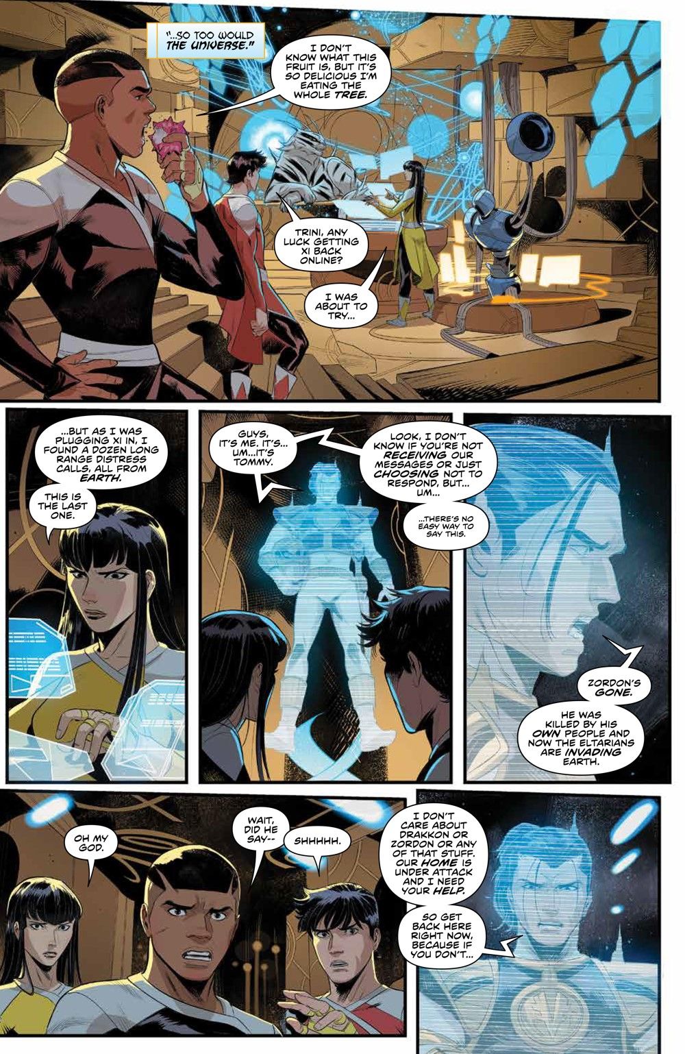 THE ELTARIAN WAR IS HERE! The Omega Rangers, including their unexpected savior the NEW Blue Omega Ranger, race against time to beat the impending Empyreal threat to Earth. But can they deliver the critical secret they've uncovered to Zordon before it's too late? New York Times best-selling writer Ryan Parrott and artist Francesco Mortarino deliver the explosive second chapter of The Eltarian War!