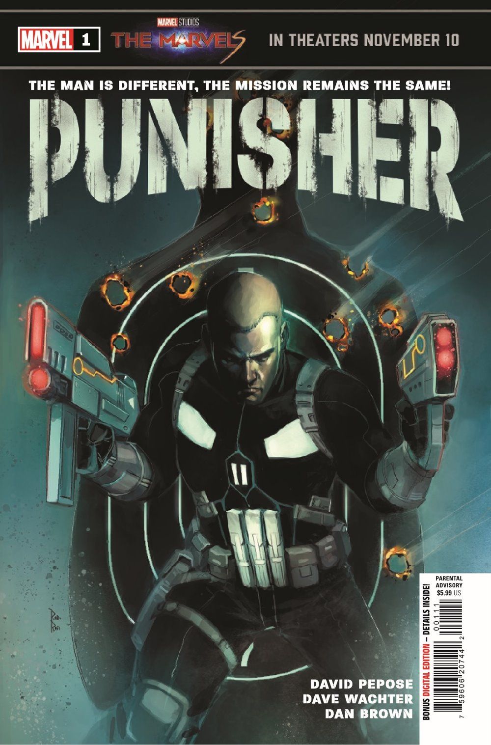 Is this the return of Frank Castle - or the start of something else? Frank Castle has disappeared, but evil will always need to be punished. With all-new threats rising to claim innocent victims, criminals will need to beware of a dangerous vigilante hunting them from the shadows. Who is the new Punisher? What put him on his path of vengeance? And when the smoke clears, will he even make it out alive? It's John Wick meets The Fugitive in this action-packed new saga from Ringo Award-winning writer David Pepose (SAVAGE AVENGERS, MOON KNIGHT: CITY OF THE DEAD) and Eisner and Harvey Award-nominated artist Dave Wachter (PLANET OF THE APES, X-MEN LEGENDS), as the Marvel Universe meets the next generation of punishment!