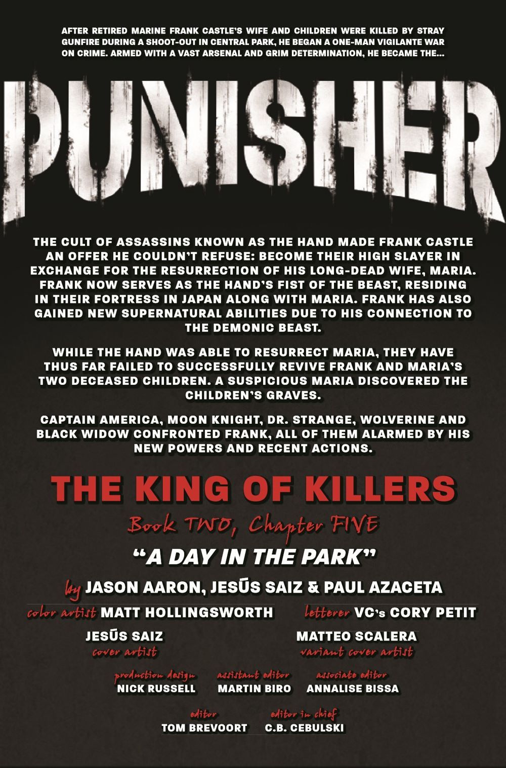 Frank Castle has finally embraced the role of Fist of the Beast, the High Slayer of the world's most powerful clan of murderers, the Hand. And the rest of the Marvel Universe has taken notice. If Frank really wants to end his war once and for all, he's going to have to fight his way through some old familiar faces.