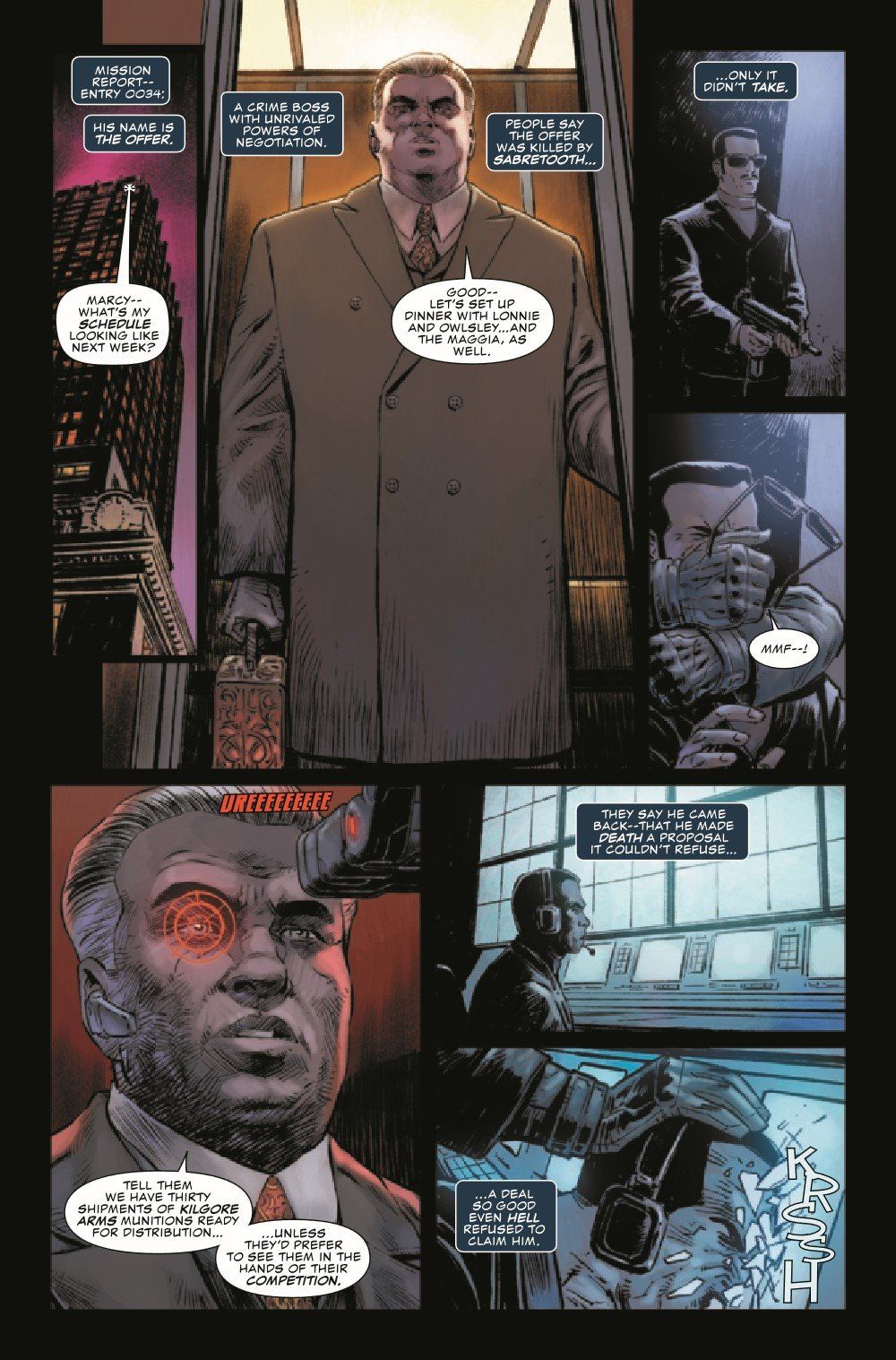 NO ONE ESCAPES THE PUNISHER! Deep in the heart of New York City, the crime lord known as the Offer trades in every currency on the planet. Barricaded within his fortified tower, he is defended by an army of guards, the latest in cutting-edge security and a team of stone-cold super villains capable of slaughtering a battalion. With the limitless resources at his disposal, the Offer thinks he is untouchable. He's about to learn that no one escapes the Punisher.