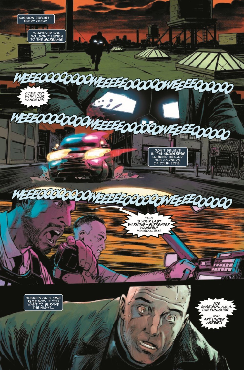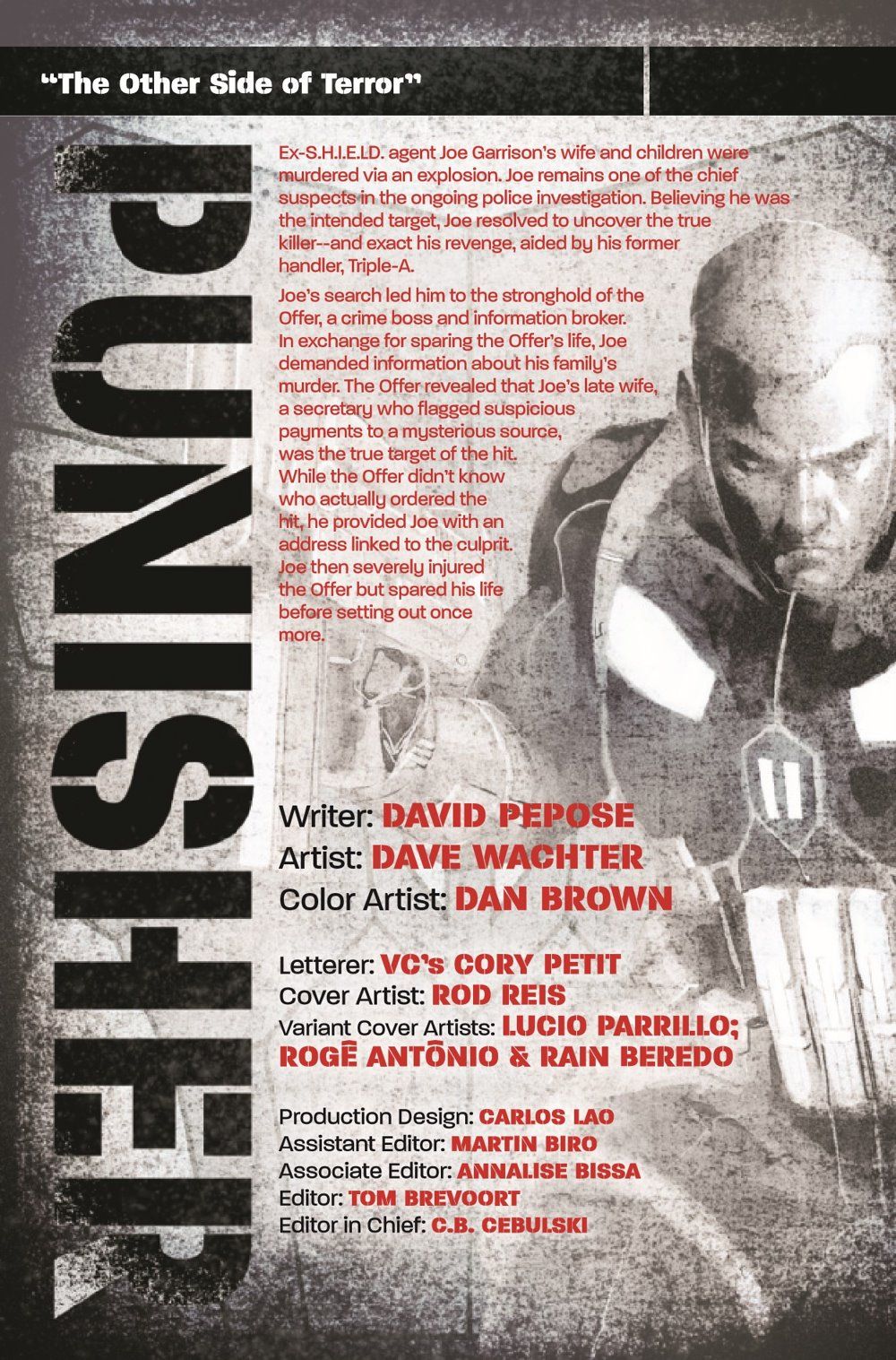 ENTER...THE FEARMASTER! Hunted down by the authorities, the Punisher must face down the one threat that cannot be stopped by bombs or bullets...the terrors inside his own mind. With an innocent life hanging in the balance, can the Punisher escape the Fearmaster's deadly abattoir, or will his quest for vengeance be cut short just as his true enemy stands revealed?