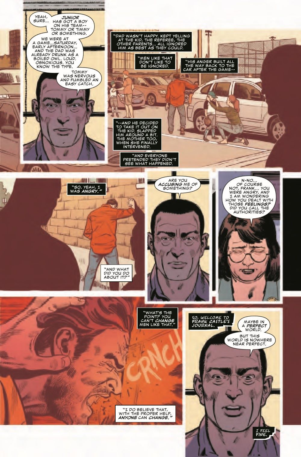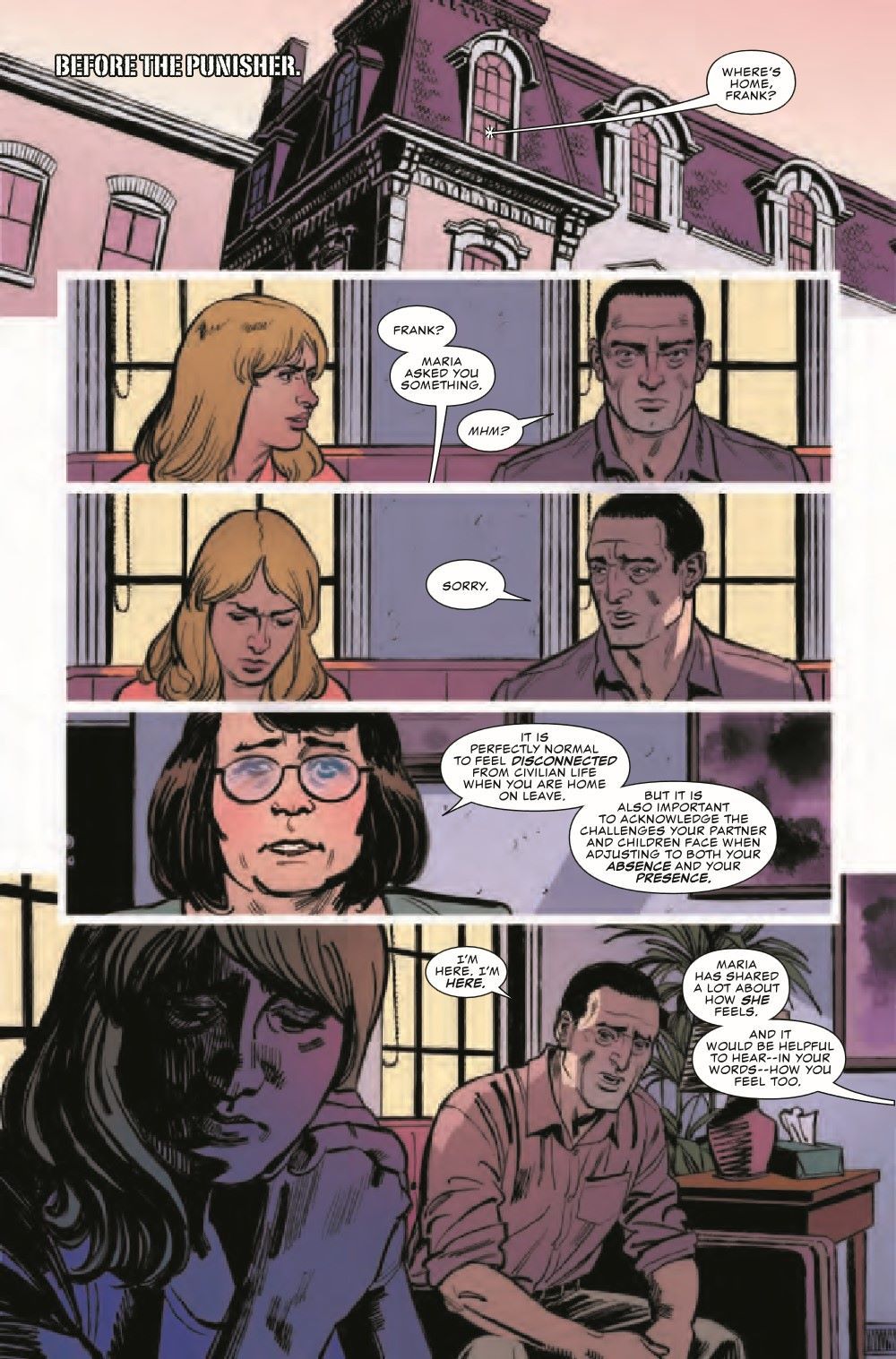 THE ORIGIN OF THE WAR JOURNAL! Before he was the Punisher, Frank Castle was a husband, a father and a Marine. Not necessarily in that order. In this story from between the pages of PUNISHER, Frank tries to come home…but finds it impossible to leave the war behind him.