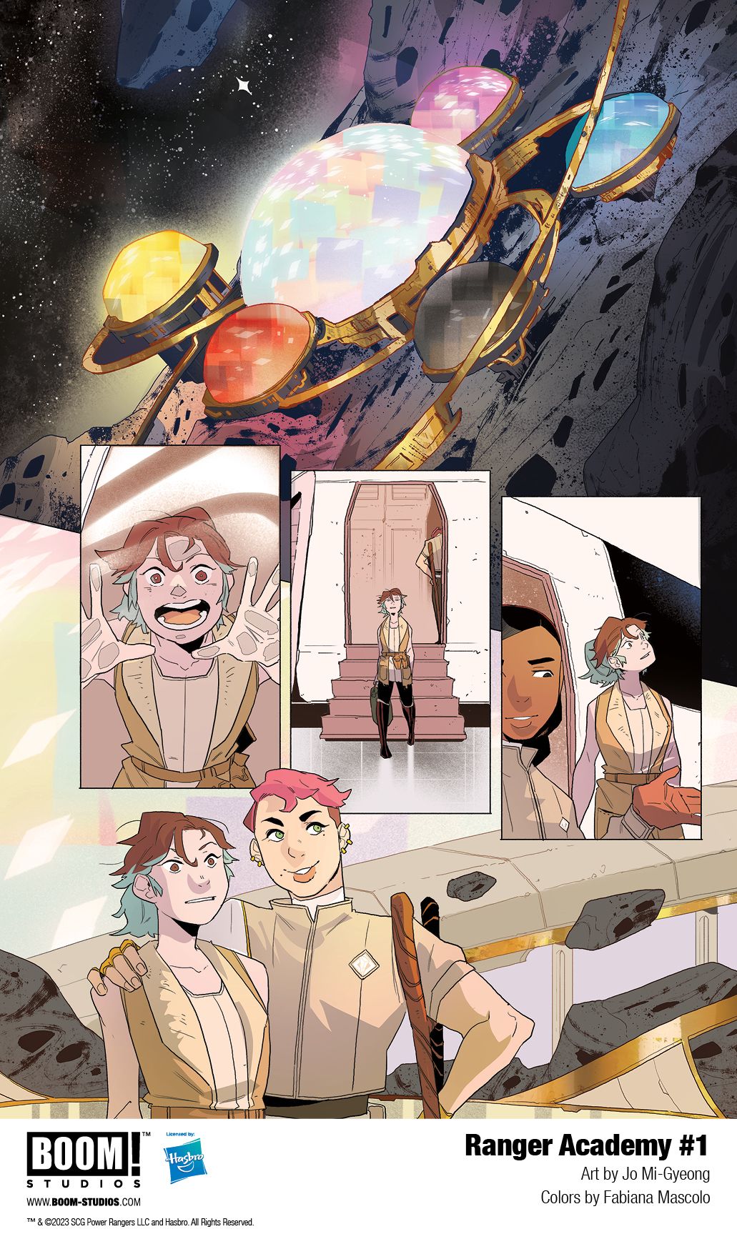 SPECIAL ISSUE. Power Rangers Meets My Hero Academia as a Brand New Team Debuts! If you had a chance to join the Power Rangers, would you do it? 13-year-old Sage lives on an isolated lunar colony with her adoptive father, but her days on the farm will change forever when she comes across a wreckage with wounded passengers… people from an academy training to be something called… POWER RANGERS! Fresh off their Free Comic Book Day preview, acclaimed YA author Maria Ingrande Mora (Fragile Remedy) and superstar artist Jo Mi-Gyeong (Eve: Children of the Moon) introduce a bold new expansion of the Power Rangers Universe! For the first time, discover the amazing school where Rangers are trained, and find out for yourself which Ranger color you would join! Would you test your might as a Red Ranger, never surrender as a Black Ranger, inspire those around you as a Pink Ranger, show no fear as a Yellow Ranger, or prove that you're the smartest kid on the team as a Blue Ranger? Enroll today!