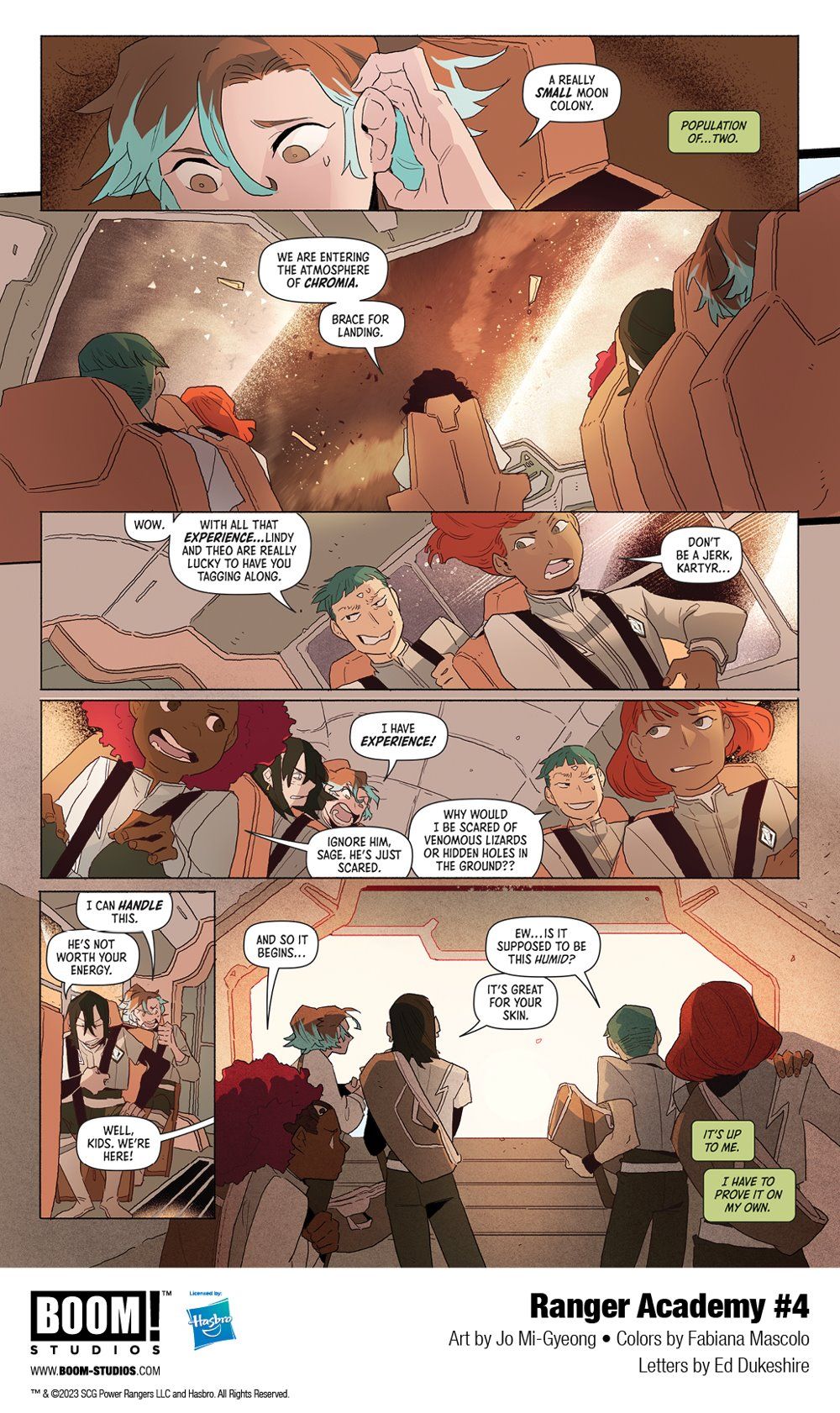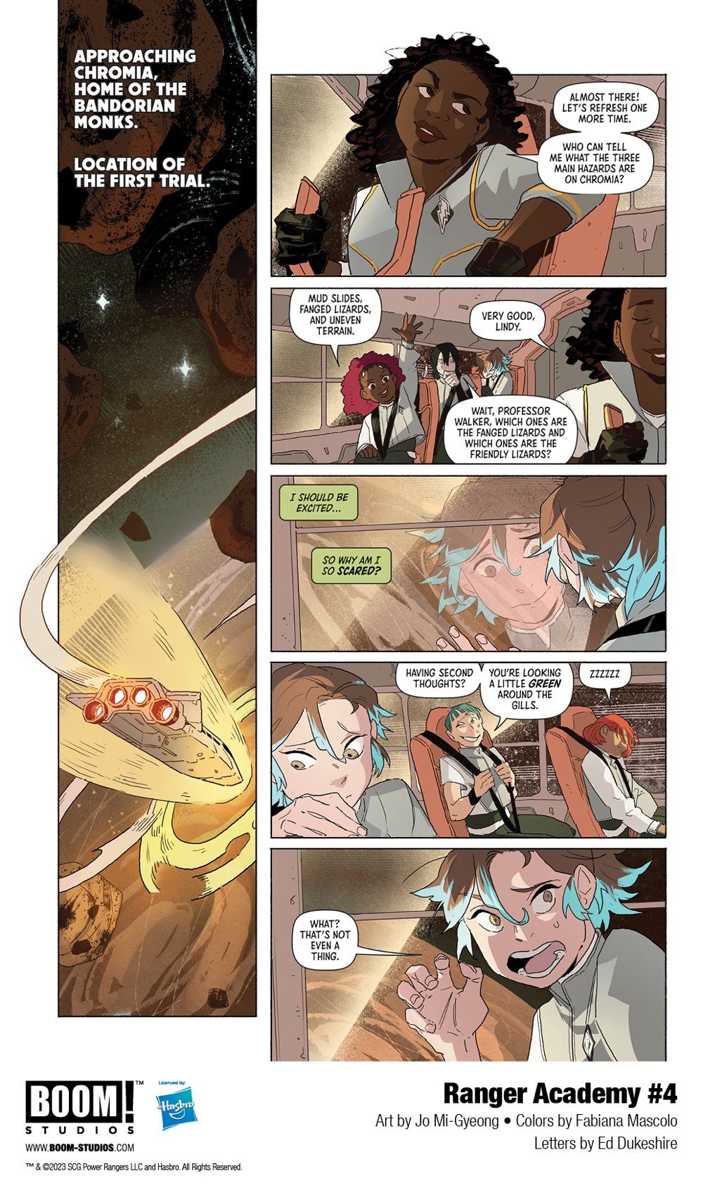 This is it. The big test. Sage will need to successfully perform her First Morph, but don't worry–it will only take all of her skills, while surviving on a hostile planet known only as CHROMIA! It will take more than just her skills though, with teamwork being essential to reach the peak and acquire the means of Morphin time. But when the class bully runs into some trouble on the way, will Sage risk her test results to save him, or leave him behind? In this game-changing issue, fans are not going to want to miss out on the exclusive spoiler variant cover by Goñi Montes, featuring a surprise so big that we can't show you the art!