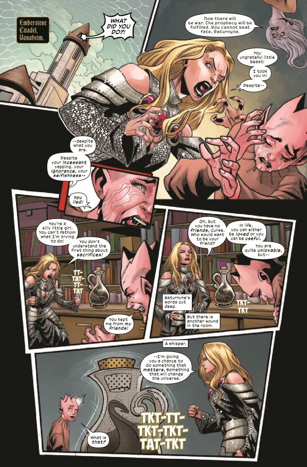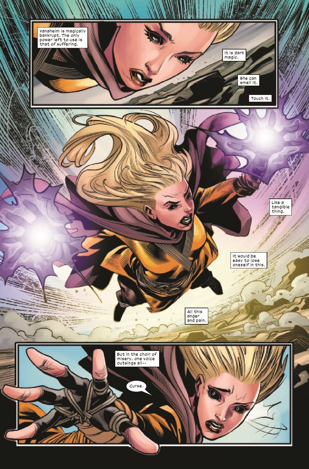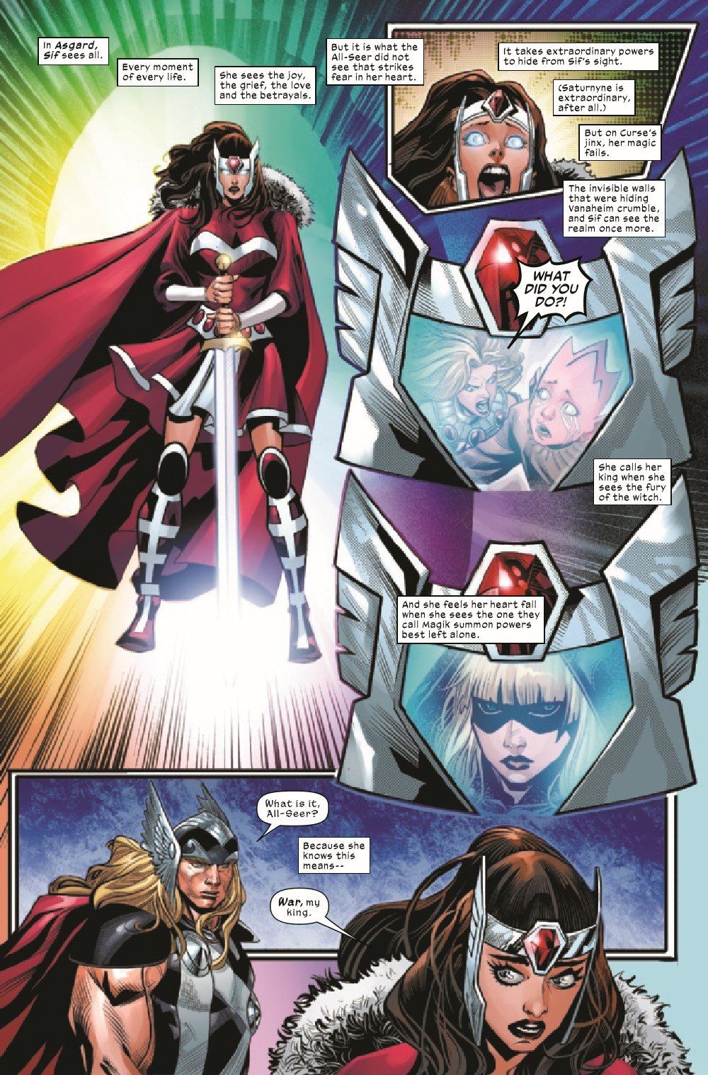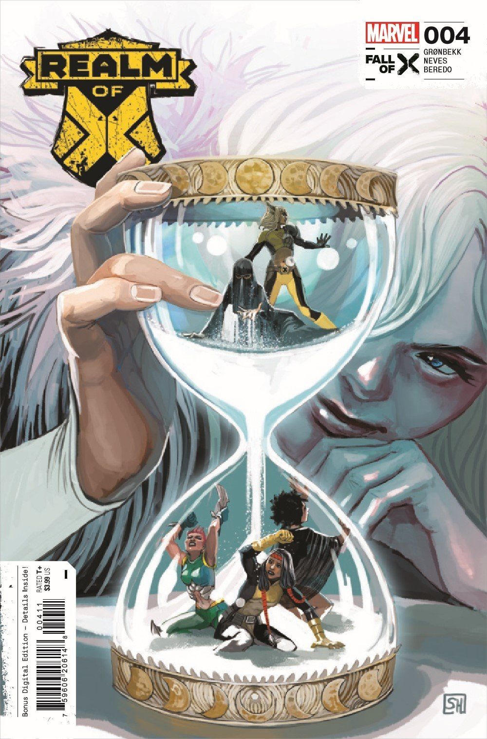 TIME HAS RUN OUT-THE END IS NEIGH! Saturnyne has set loose her army, and all hell has broken loose in Vanaheim! Mirage, Dust, Marrow and Typhoid Mary are doing all they can to stem the tides, but the odds aren't in their favor. Elsewhere, Magik and Curse find themselves caught in the eye of the storm as the battle for the fate of Vanaheim rages on!