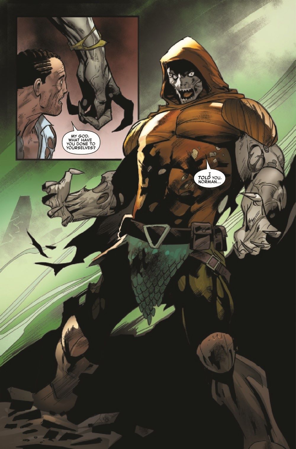 WHO IS THE GOBLIN KING?! A new GOBLIN KING reigns under the streets of New York - but who, or what, is this terrifying new leader of a resurgent GOBLIN NATION?! And why has he kidnapped Norman Osborn? And why has he siphoned off GALLONS of Osborn's goblin-serum-infused blood?!