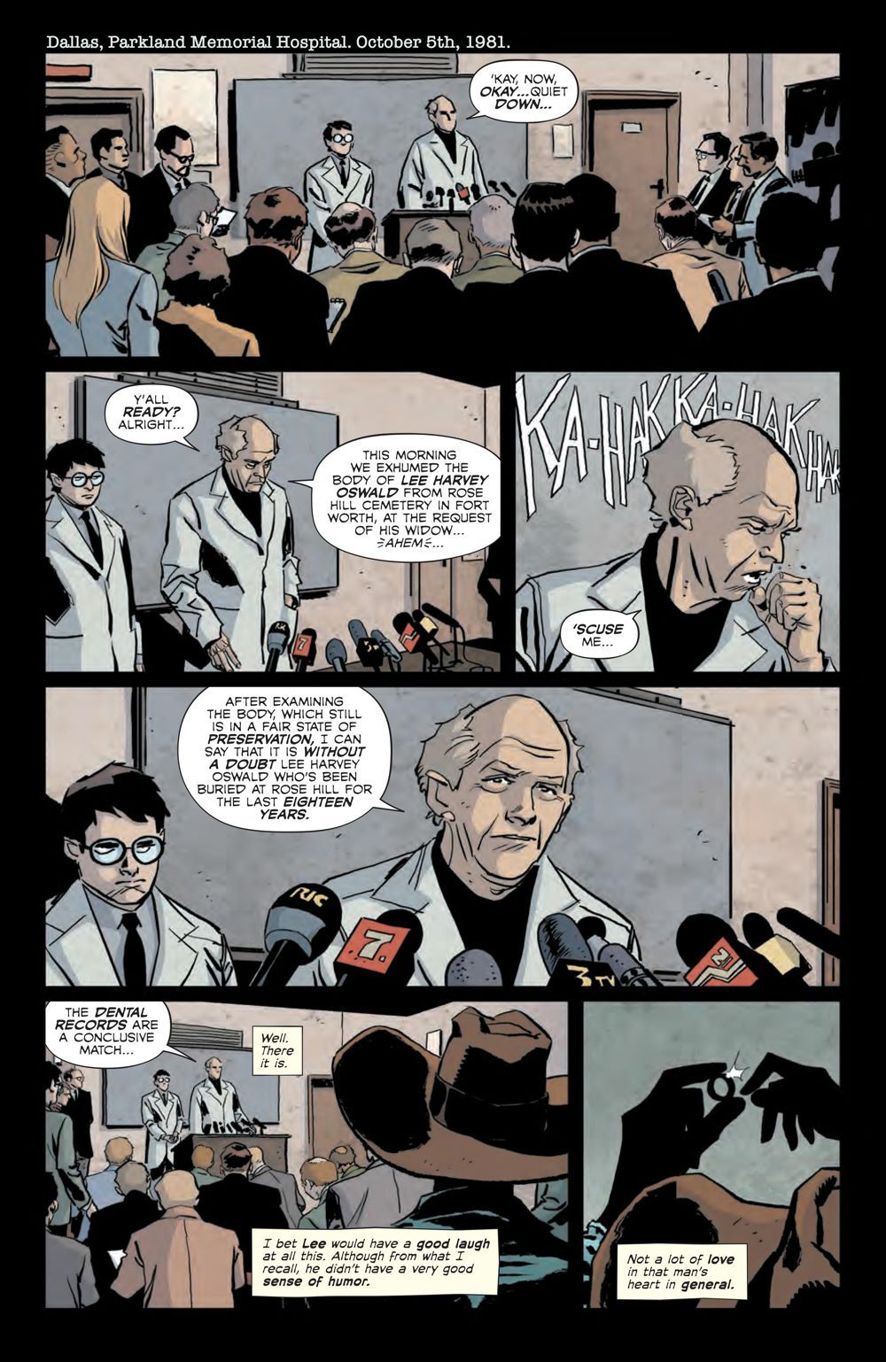 A shadowy figure awaits the forensic results of Lee Harvey Oswald's supposed body, while our four—now five—are waylaid in Texas on their way to Louisiana, with the risk of capture adding to their already tense situation. The four are increasingly bothered by their fifth wheel, and contemplate what to do about him, but when one of them answers that question, they'll all have no choice but to face their fates one way or another.