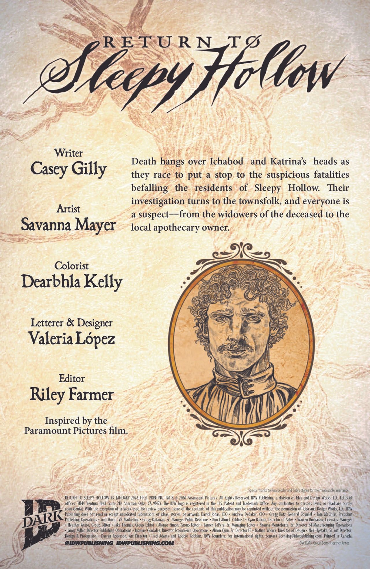 Tim Burton's Sleepy Hollow (1999) continues in Return to Sleepy Hollow! Death hangs over Ichabod's and Katrina's heads as they race to put a stop to the suspicious fatalities befalling the residents of Sleepy Hollow. Their investigation turns to the townsfolk, and– everyone is a suspect—from the widowers of the deceased to the local apothecary owner. But the pair dig up nothing but dead ends until a possessed gardener leads them to…The Tree of the Dead! The cursed ground where Lady Van Tassel resurrected the malevolent Headless Horseman, and the very same place spirits have been showing Lotte over and over again in her visions. It seems the tree is the root of Sleepy Hollow's problems, but it may also hold the answers Ichabod and Katrina seek.