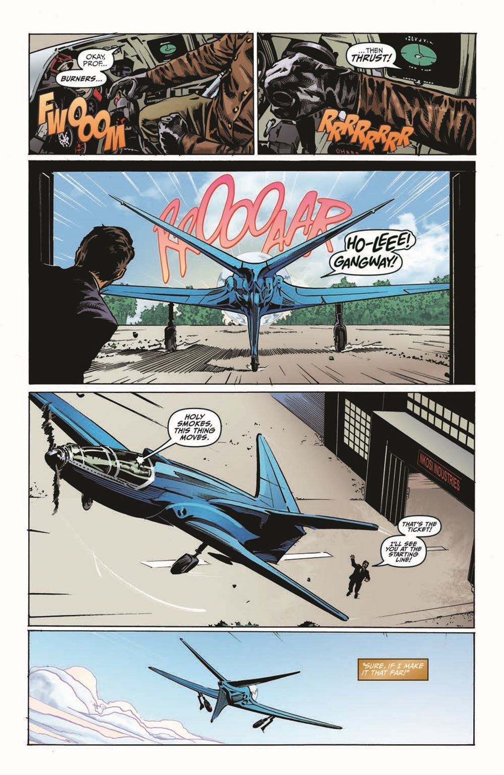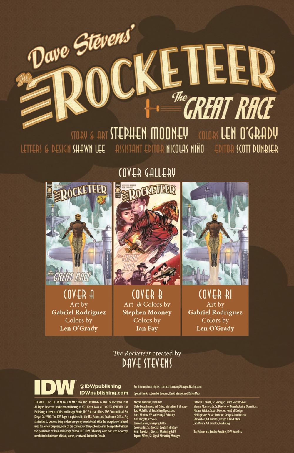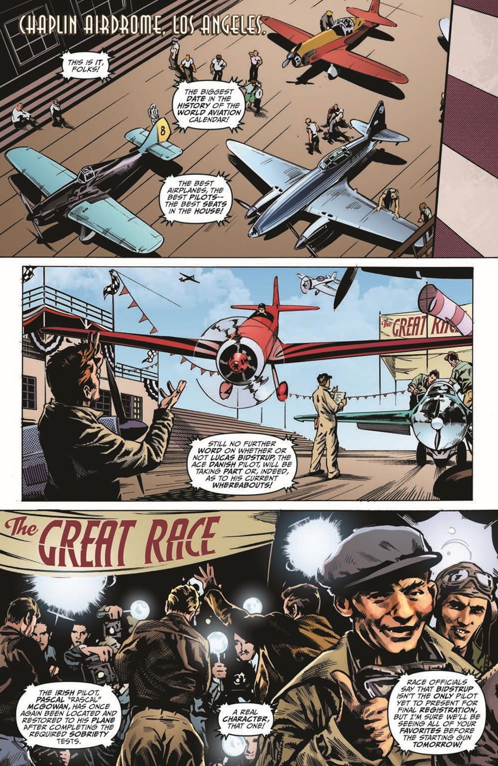 Cliff Secord has finally decided to abandon the Rocketeer persona for good and concentrate on making his gal, Betty, proud of him by taking an honest-to-goodness legit gig-piloting an experimental rocket plane in a death-defying race halfway around the world! Cliff must navigate both the route and the myriad ace pilots assembled against him in order to secure one of the most valuable prizes ever offered. If only the competition were as prepared as Cliff to play it straight... Ladies and gentlemen, start your engines!