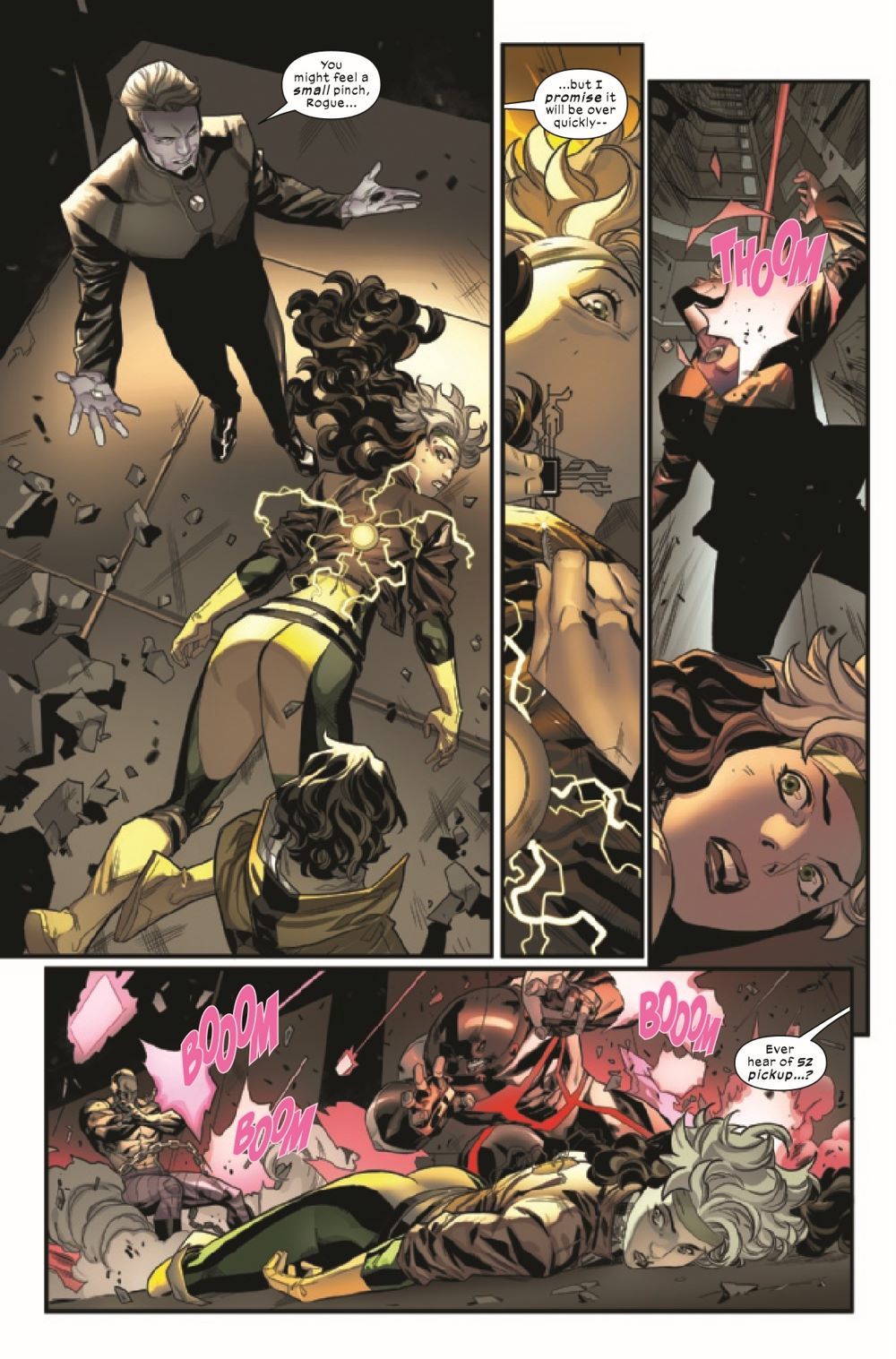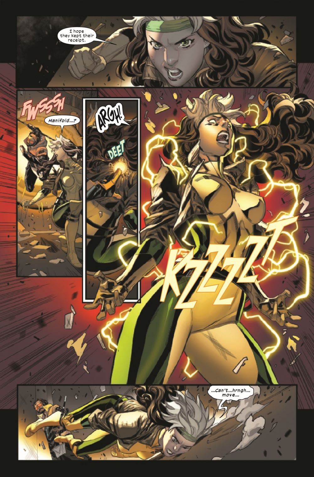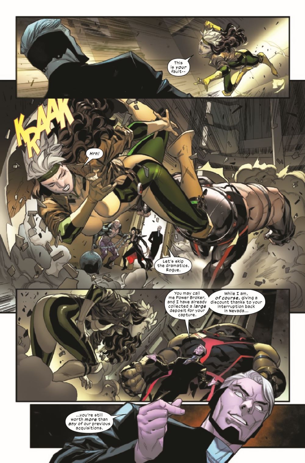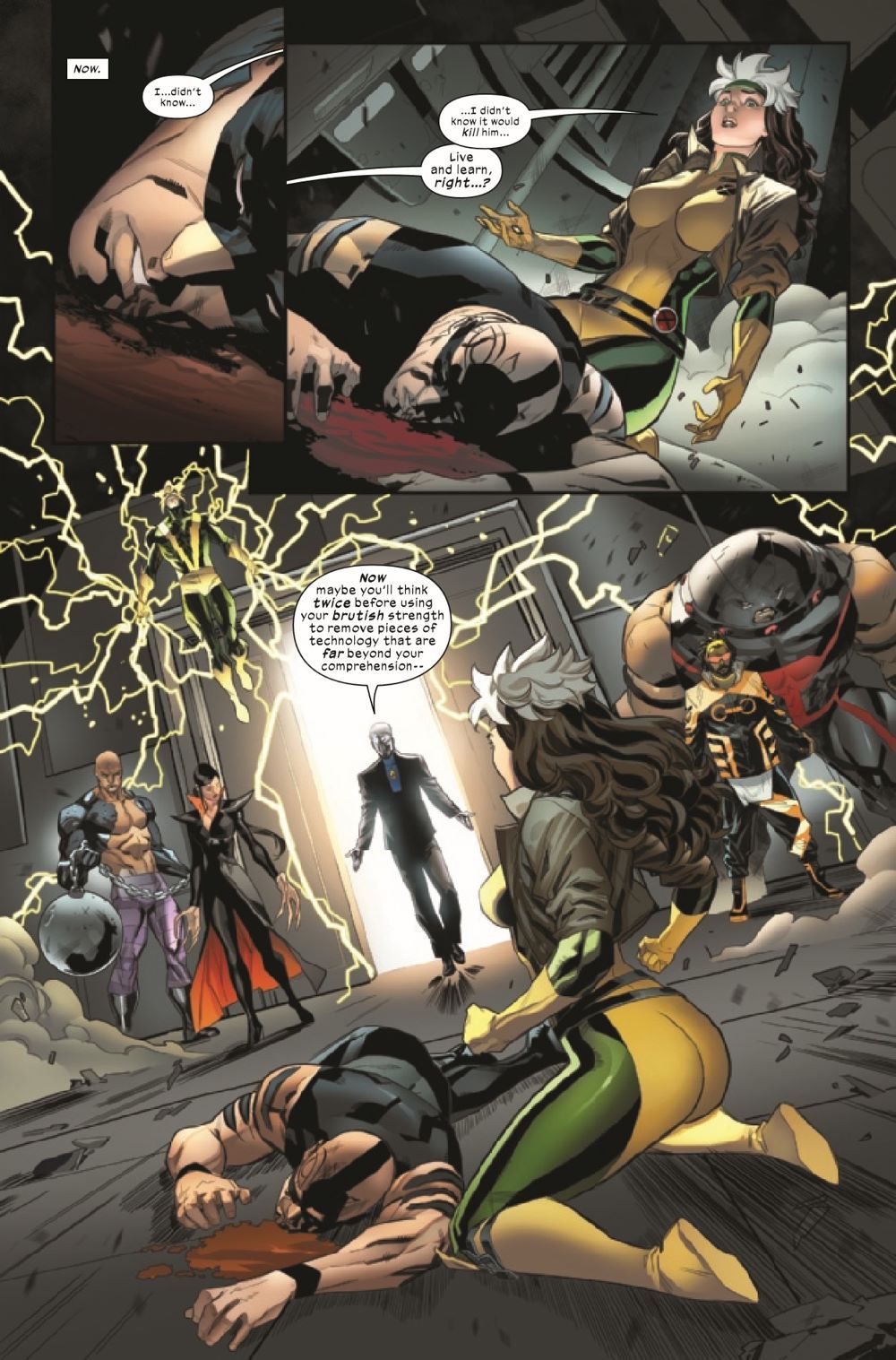 WITH THEIR POWERS COMBINED… …Rogue and Gambit are still dead in the water! And so are the powered humans who've mysteriously disappeared recently. Crusher Creel, Juggernaut, Vanisher, Lady Deathstrike… What are all these (sometime) villains doing in one place, and who is pulling the strings? The gloves come off, and series secrets are revealed as this house of cards comes crashing down!