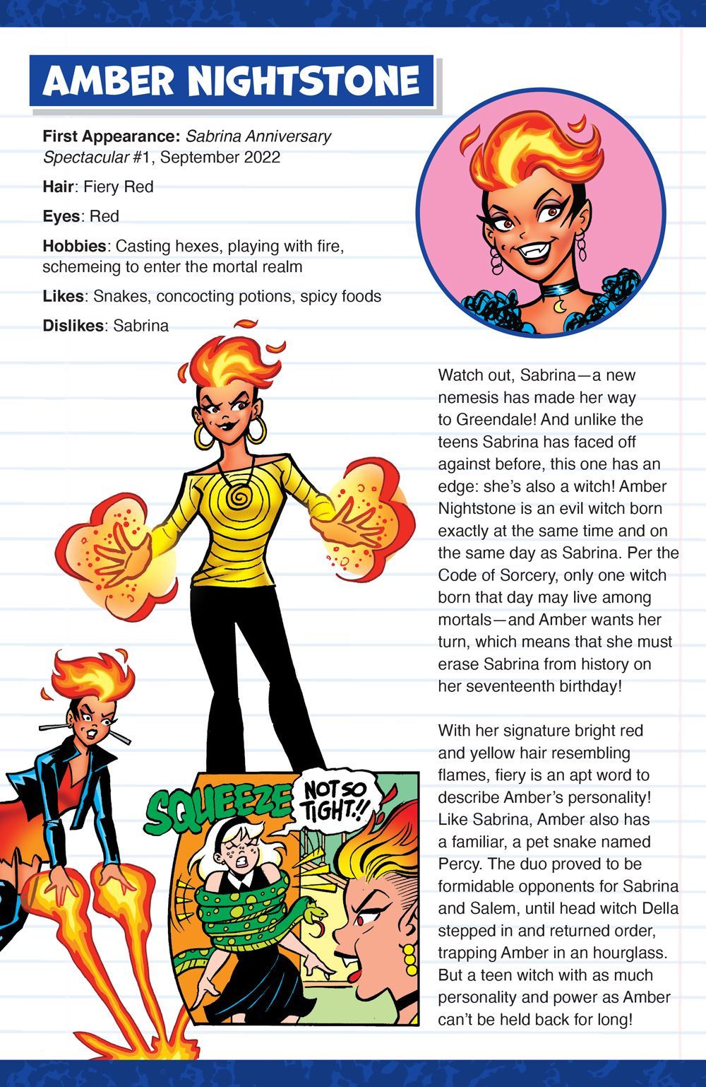 Second Printing! We couldn't possibly enter spooky season without celebrating Sabrina as much as possible! And we're kicking off this spectacular with a BRAND NEW Sabrina story that we guarantee will be the greatest Sabrina Halloween story ever! In "Celebration Vexation!" It's Sabrina's birthday and she's celebrating her day-with an epic battle against her nemesis, a BRAND NEW character named AMBER NIGHTSTONE! Amber is an evil witch born at exactly the same time as Sabrina. Only one witch born that day may live amongst mortals, and Amber wants her turn, so she has to erase Sabrina from history! All that plus a collection of classic-style spell-binding stories!