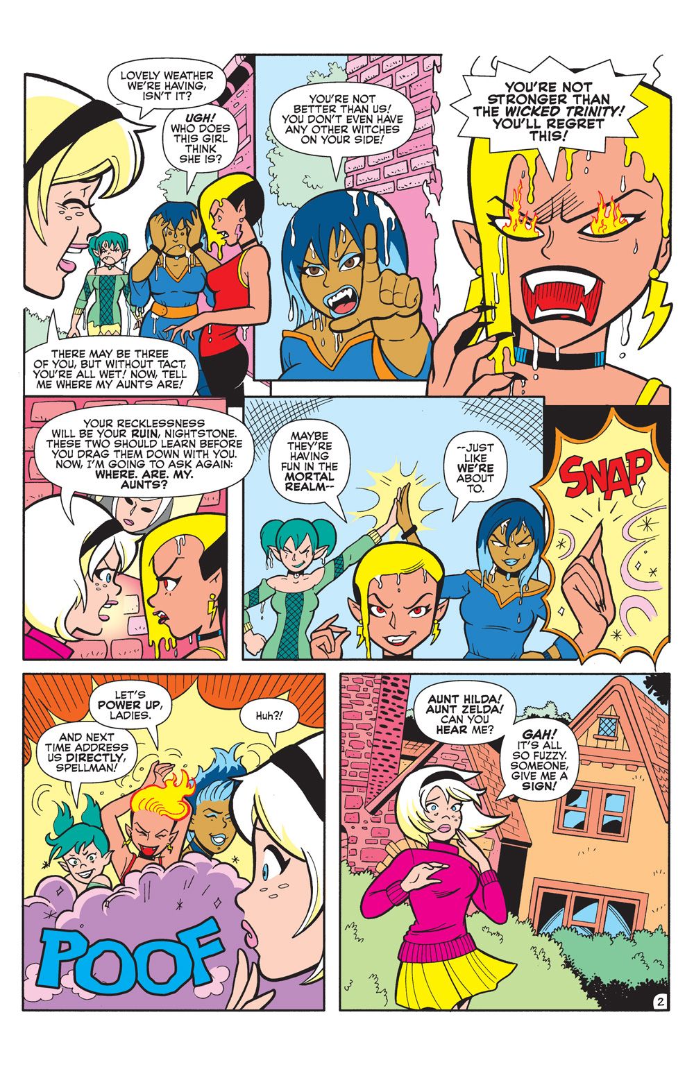 BRAND NEW STORY: "Power of Three." Amber Nightstone, Sabrina's new nemesis, refuses to be defeated, and her power in numbers is growing. Now with two brand new comrades by her side, Jade and Sapphire, Amber has a thirst for power. She decides to kidnap any magic-doers she can find, including members of Sabrina's family. Sequestering them away to gain their magical insights, Sabrina's going to have to go at defeating Amber and her cronies alone… unless she can find other magical beings to help her out. All that plus more magical Sabrina content!