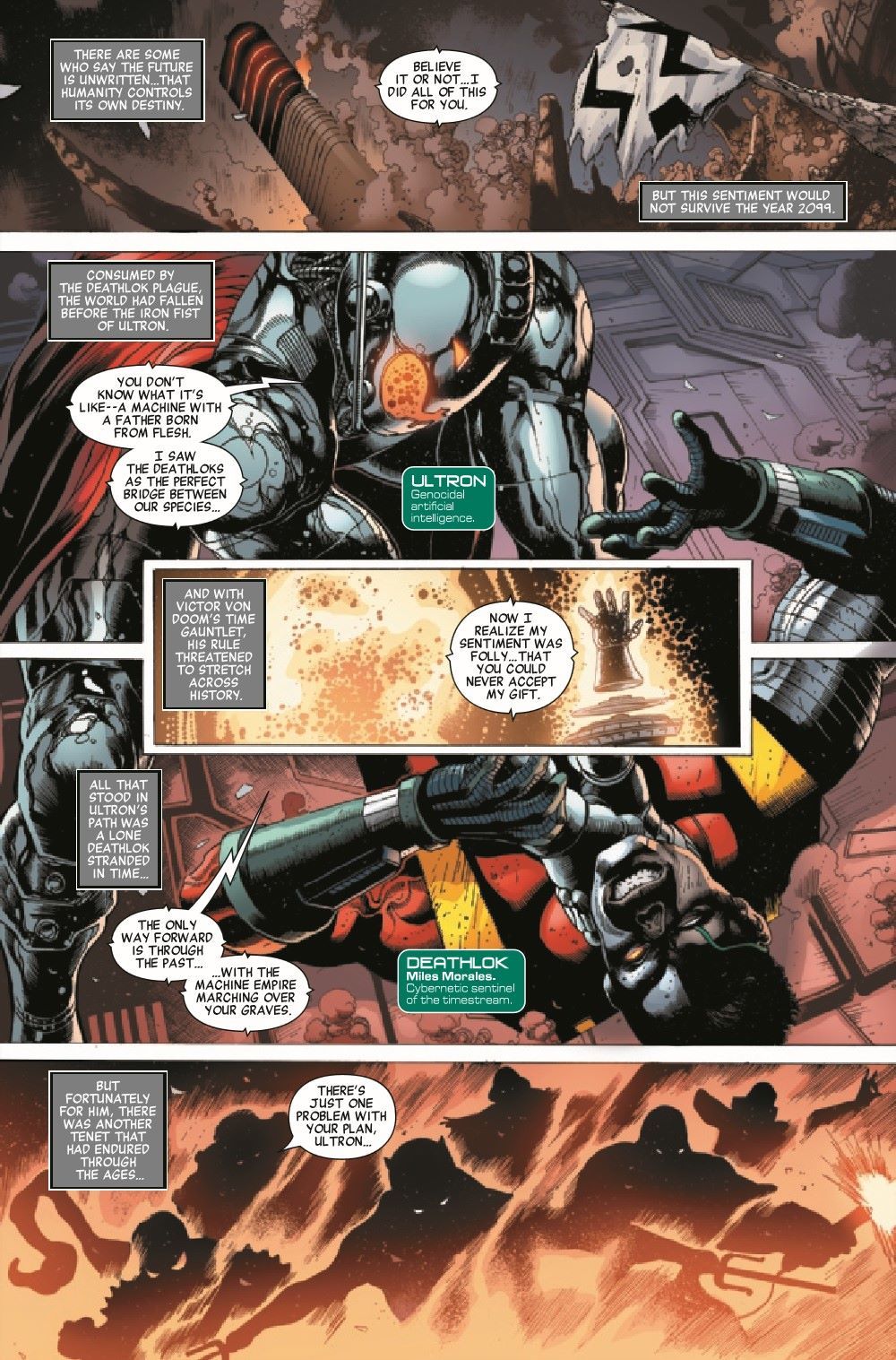 THE ENDGAME IS NOW! Stranded in the unforgiving future, the Savage Avengers have survived every trial and tribulation that 2099 has to offer. But with Ultron now in possession of a time-traveling Doom gauntlet, can our heroes hope to stop the Machine Empire from conquering the timestream itself? Prepare for an epic showdown of blood and steel, as Marvel's most dangerous heroes unite to save the world - or die trying!