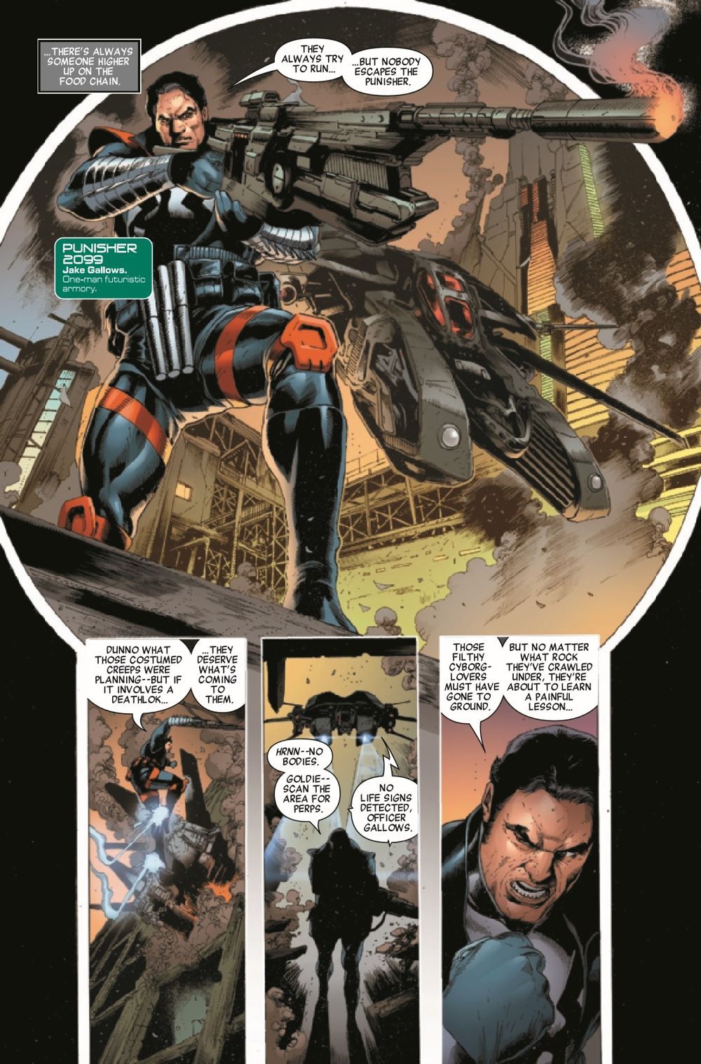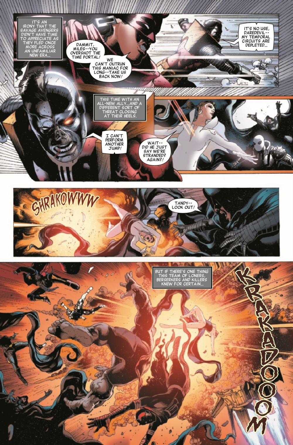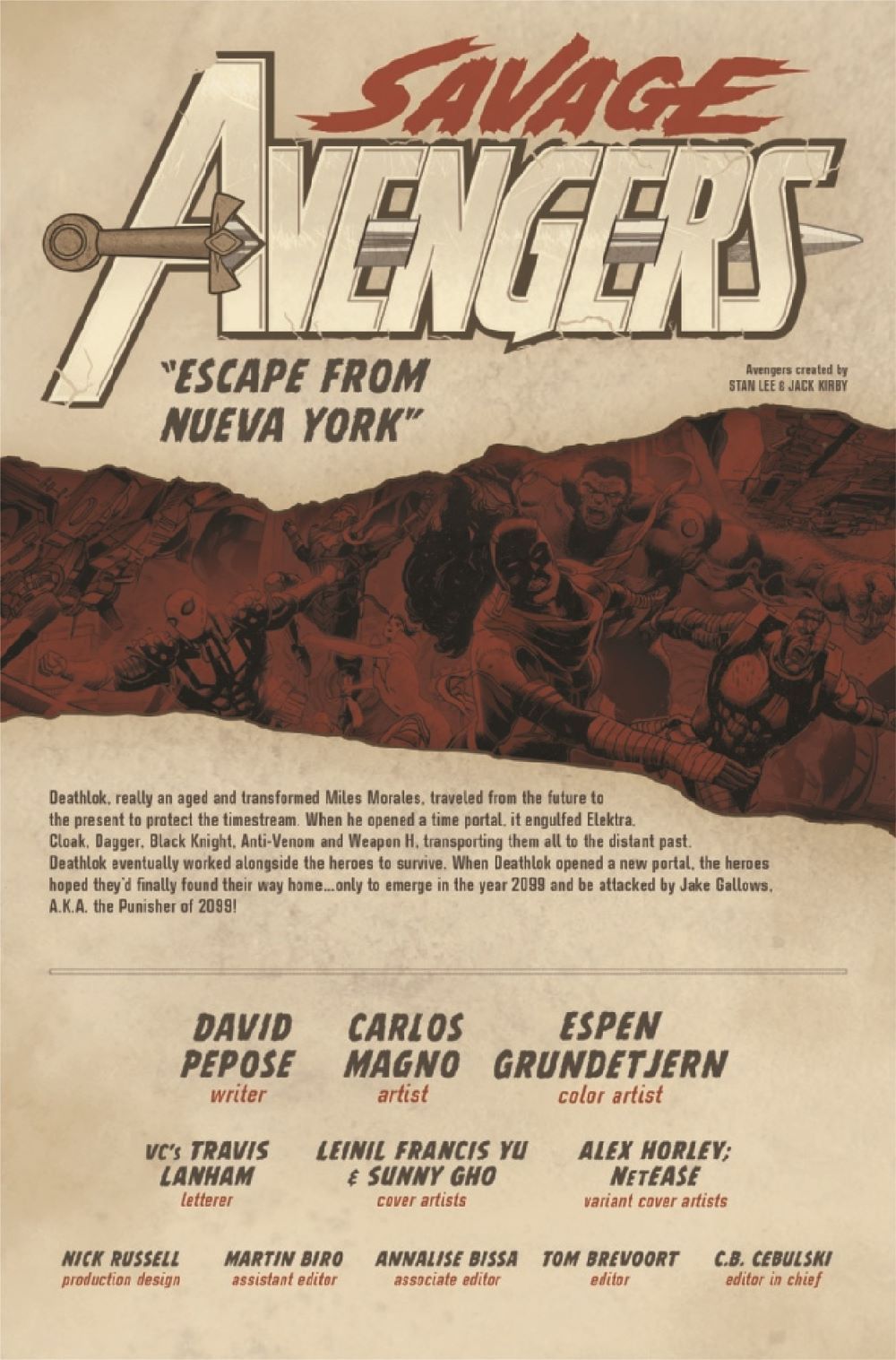 ESCAPE FROM NUEVA YORK! Following their harrowing journey to the Hyborian Age, the Savage Avengers have learned no good deed goes unpunished - not when they're stranded in the Deathlok-ruled dystopia of 2099! As our shell-shocked heroes are swarmed by cybernetic soldiers, will the PUNISHER 2099 prove to be the Savage Avengers' salvation…or their ultimate downfall? Everything changes here in the beginning of this action-packed new storyline!