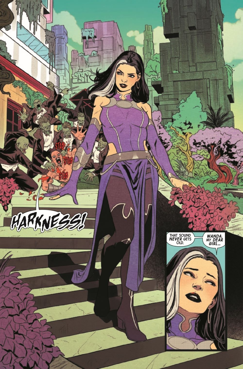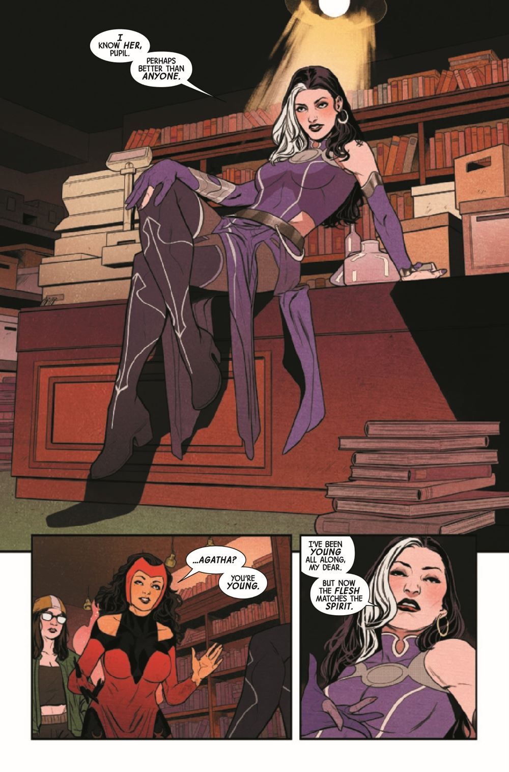 "CONTEST OF CHAOS" PRELUDE! When a newly rejuvenated Agatha Harkness learns of the Scarlet Witch's recent absorption of Chthon, she decides to educate her former student on the dangers of such an endeavor. But Wanda is not the meek pupil she once was - and Agatha's intentions are not so straightforward. This epic clash between Marvel's most powerful witches sets off a chain reaction that will affect the course of Marvel's summer!