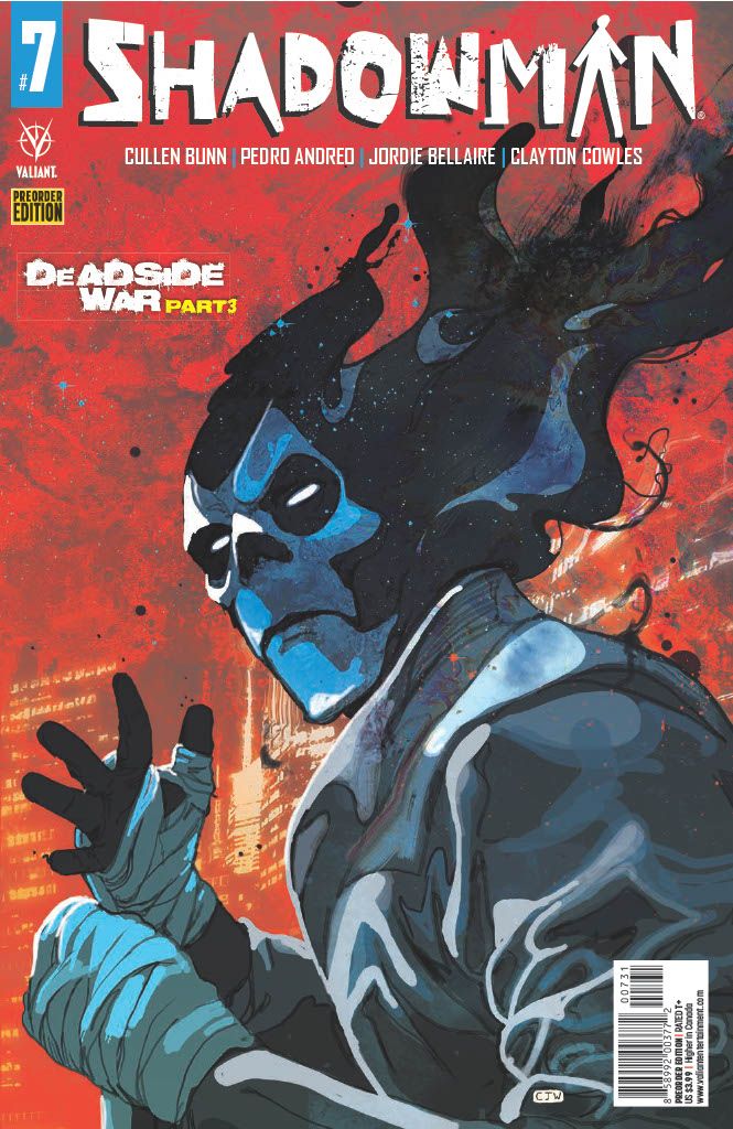 SHADOWMAN #7 is written by CULLEN BUNN, illustrated by PEDRO ANDREO, colored by JORDIE BELLAIRE, and lettered by CLAYTON COWLES. SHADOWMAN #7 features covers by JON DAVIS-HUNT (Cover A), DAN BRERETON (Horror Movie Homage Variant), and CHRISTIAN WARD (Pre-order Variant).