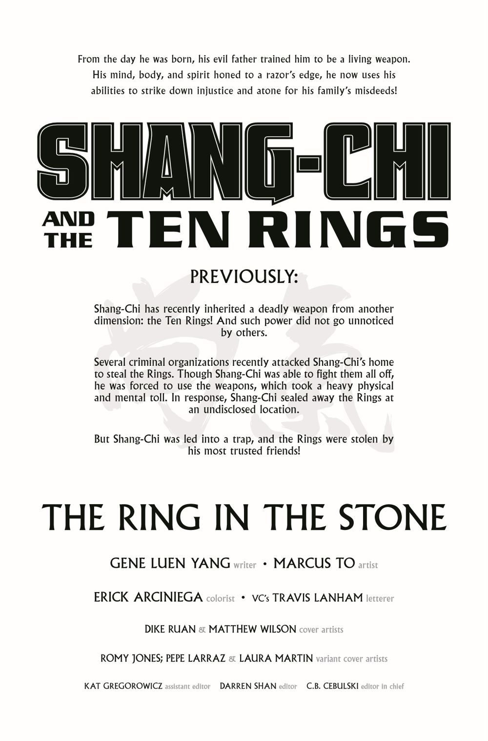 Shang-Chi has lost the Ten Rings! But who stole them? The answer will shock Shang-Chi, as the Rings' unknown power is about to be unleashed!