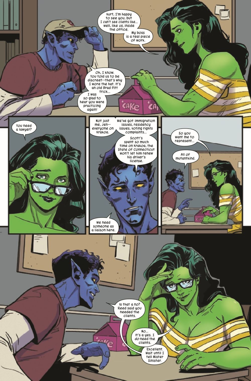 HOW MANY MILES DOES IT TAKE…TO SAVE THE UNIVERSE?! The smash hit of 2022 rolls on with its best issue yet. Nightcrawler visits Book Law, but what does HE need legal defense for? And one of the greatest traditions in Marvel Comics history continues here!