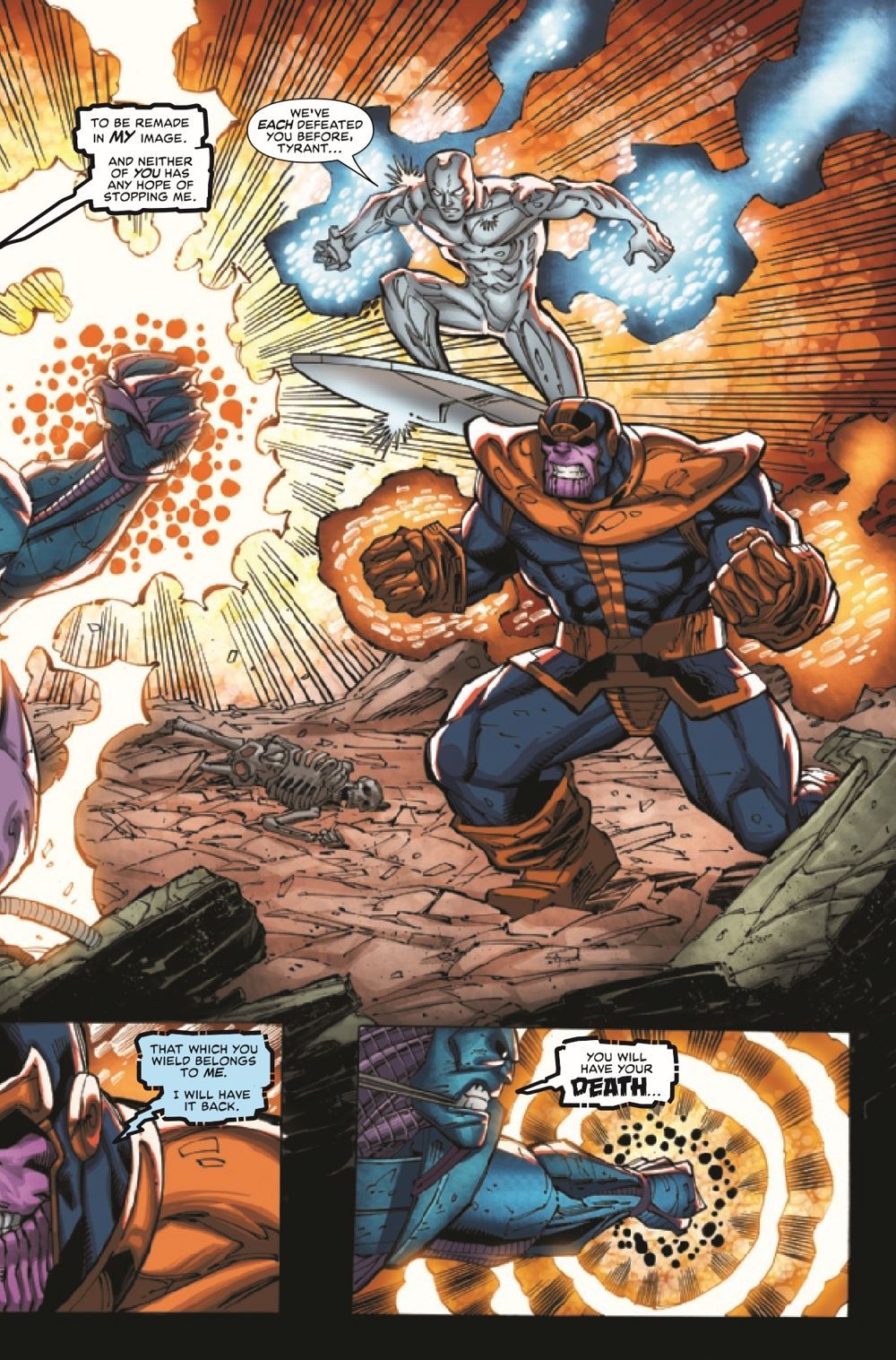 THE BIG FINALE! Silver Surfer and Thanos must stop Tyrant from using the full power of the Reality Gem! But will Surfer be able to resist his own temptation to use the Gem? And does that mean a world where the Silver Surfer never existed?!