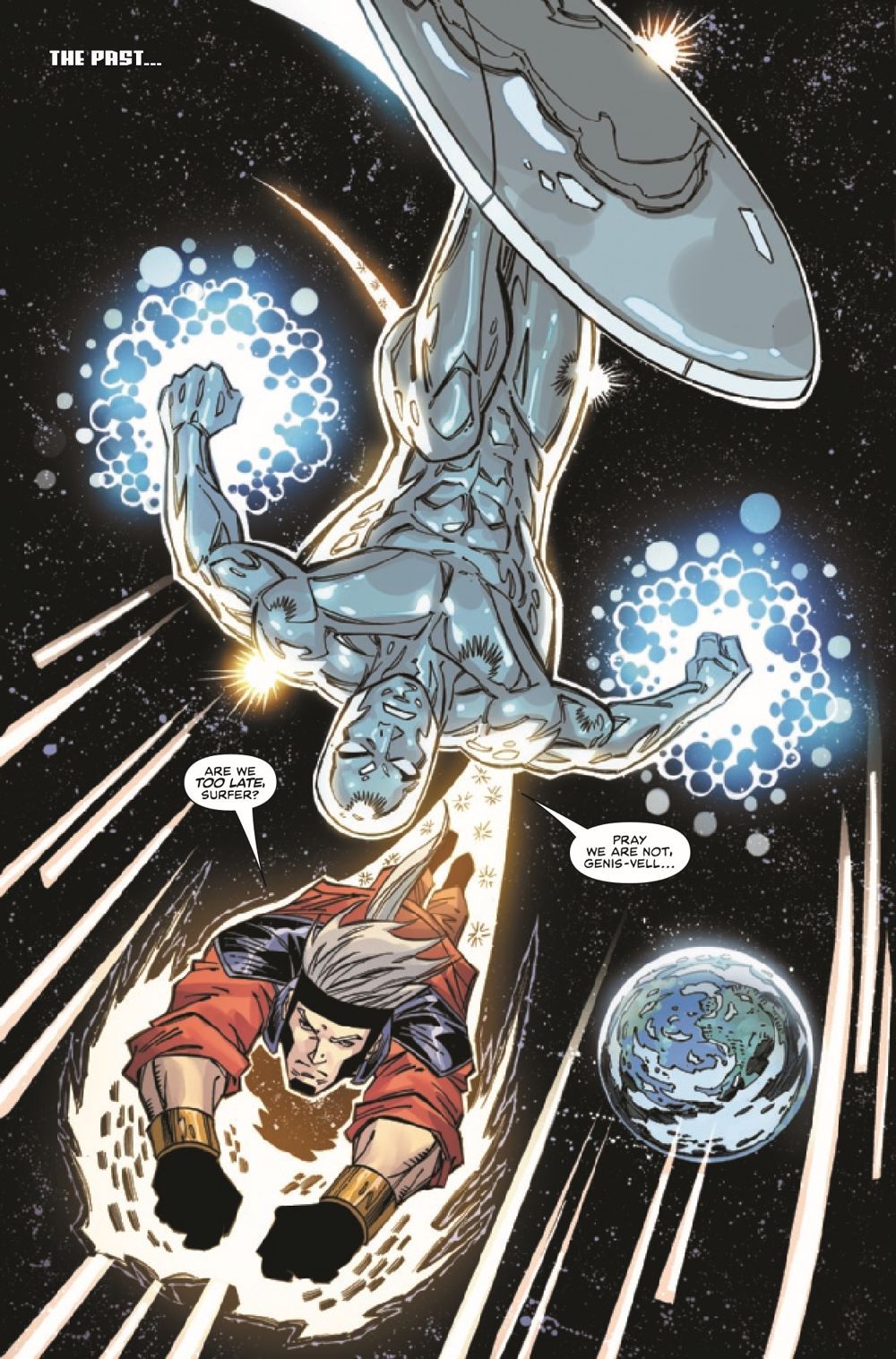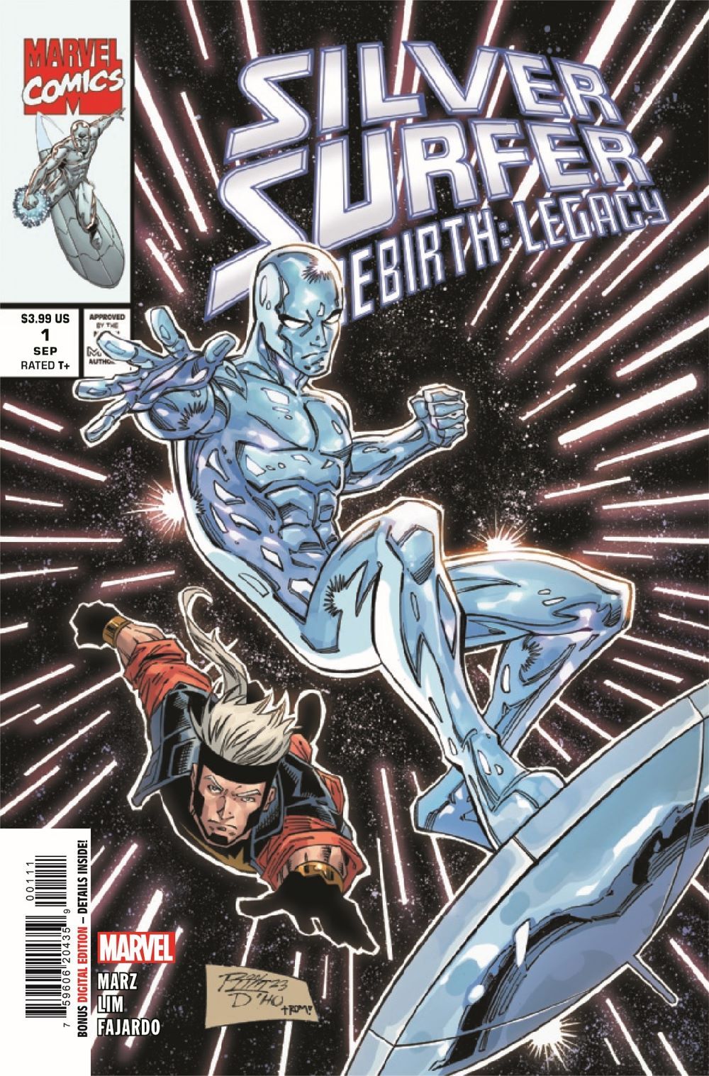 The Sentinel of the Spaceways has taken the son of Captain Mar-Vell, Genis, under his wing, but even the Power Cosmic can't replace the love of a father! The Surfer knows something that might just be able to soothe a broken heart, but is it worth a clash with THE INFINITY WATCH? Beloved creators Ron Marz and Ron Lim return to a story from their celebrated run on Silver Surfer and they're not the only time travelers...