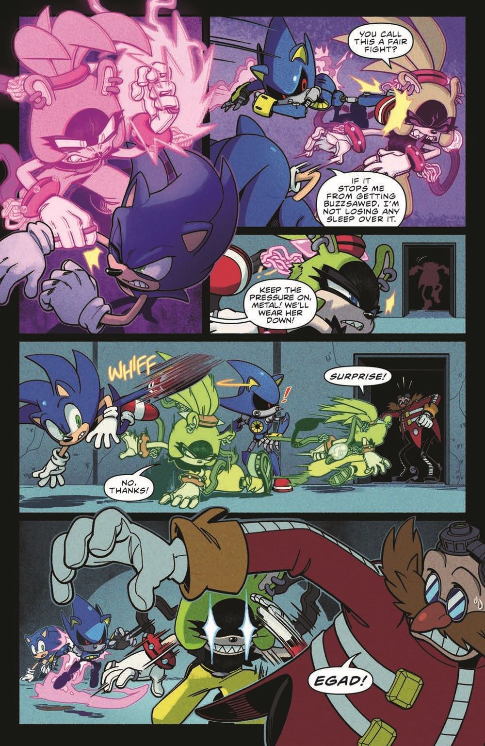 SURGE VS. SONIC round two! Surge is more powerful than ever, but with each move, her power becomes more and more erratic. She's out of control and only a certain blue guy can turn the tides...
