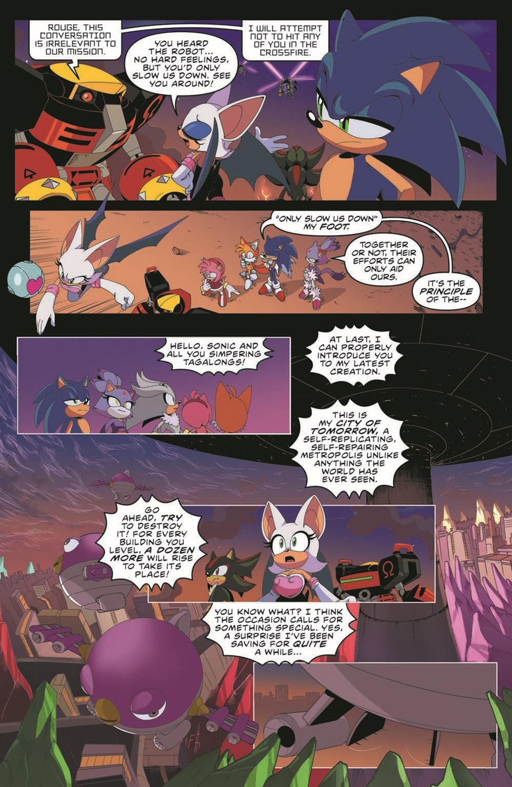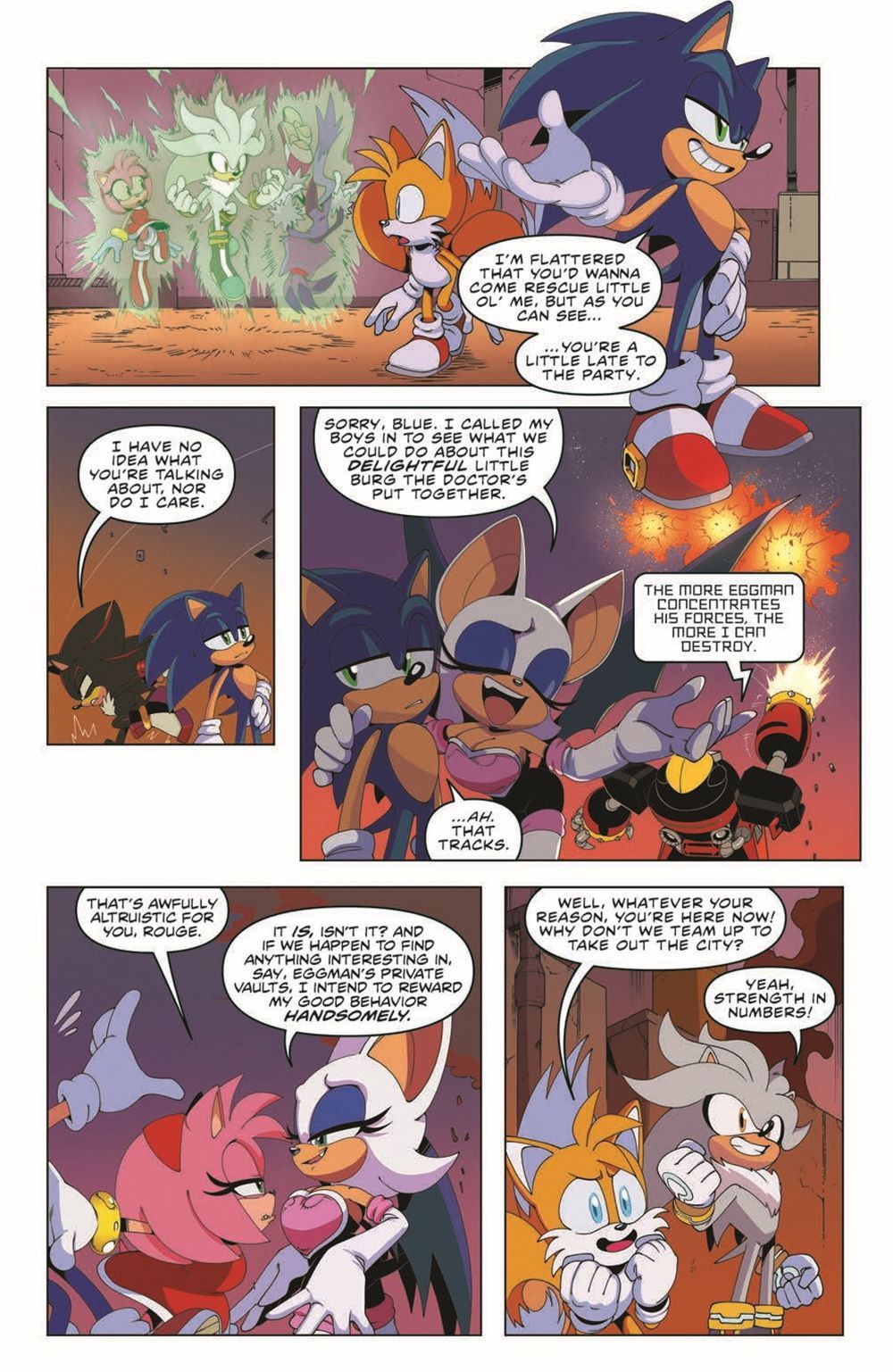 Androids everywhere! Three teams are trapped in Eggperial City, fighting wave after wave of androids. Sonic is speeding, Amy is smashing, Tails is flying. Shadow is punching, Omega is ripping, Rouge is…looting. But will it be enough? And has anyone seen Tangle?!