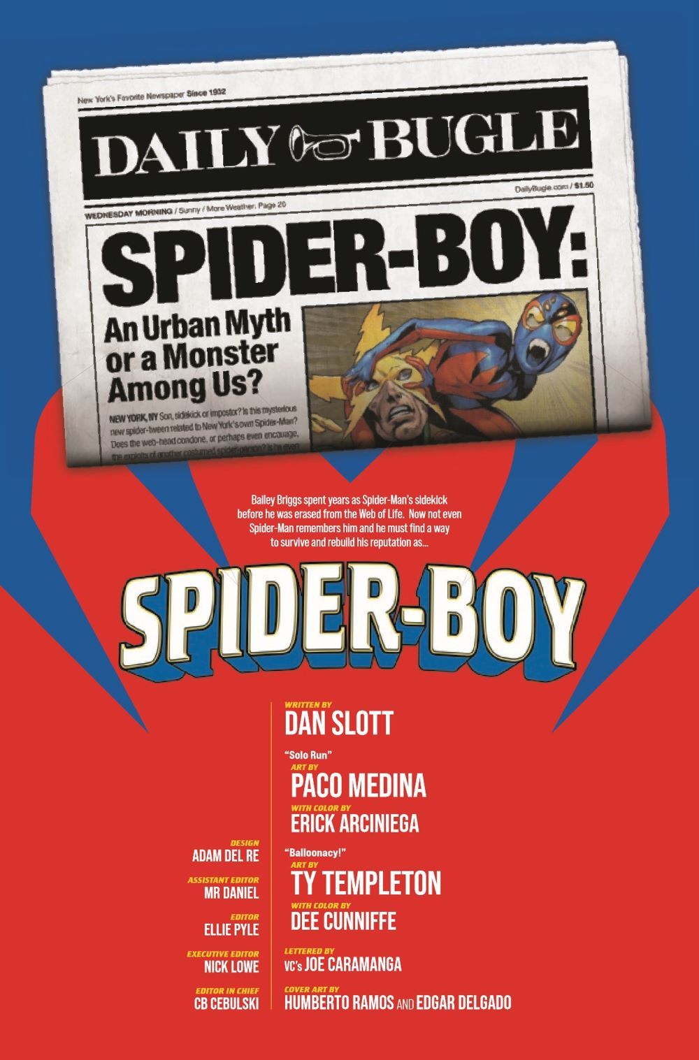 SECRETS OF SPIDER-BOY REVEALED! Spinning out of the pages of DAN SLOTT and MARK BAGLEY's monumental SPIDER-MAN run - here comes the spectacular SPIDER-BOY! After the events of THE END OF THE SPIDER-VERSE, Spider-Boy's secret history as Spider-Man's sidekick was nearly forgotten forever. But now those mysteries will be revealed while they embark on exciting new adventures…TOGETHER!