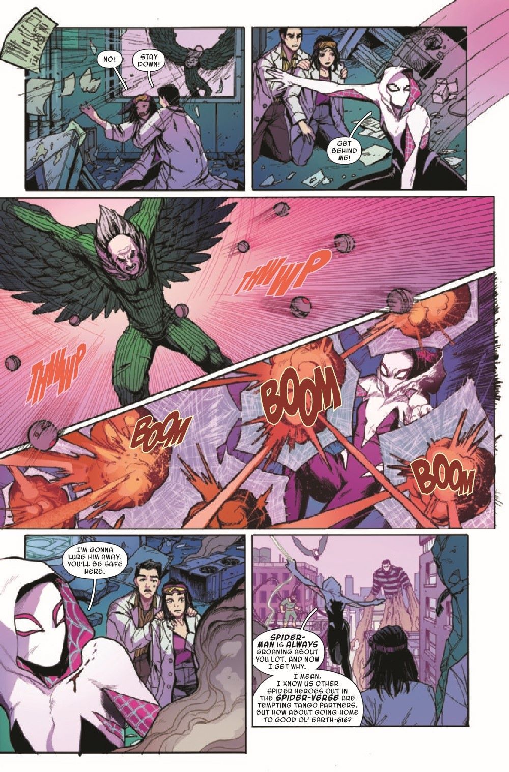GHOST-SPIDER'S LIFE TURNS UPSIDE DOWN! Ghost-Spider comes face-to-face with some of the deadliest Spider-Man villains, including Doc Ock, Sandman, Vulture and more! But wait… Why do they all look like…Gwen?! Writer EMILY KIM (SILK) and artist KEI ZAMA (AVENGERS MECH STRIKE) take Gwen down a twisted path as she must stop whoever is cloning her into infamous Marvel villains!