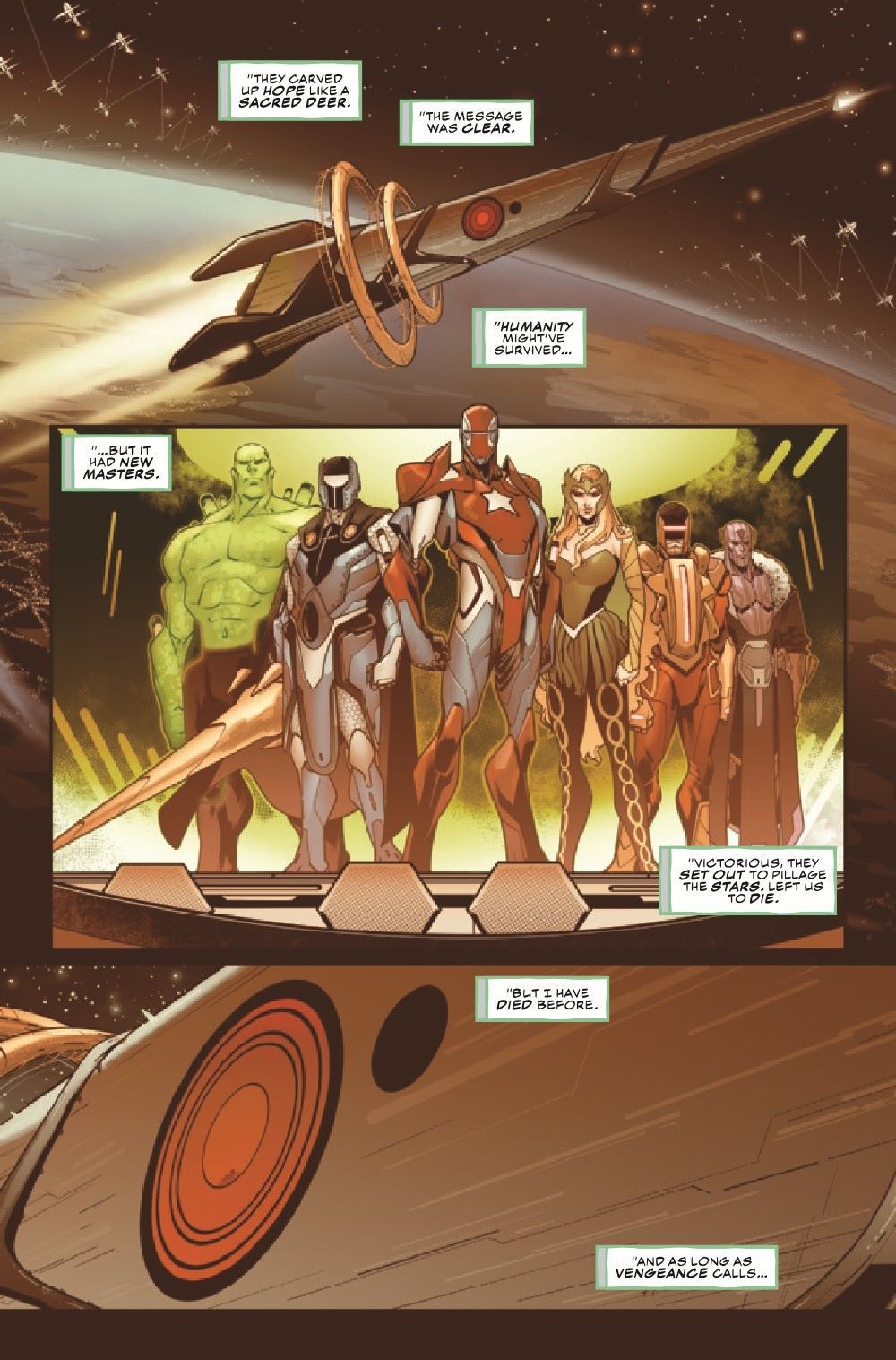 FEATURING THE NEW AVENGERS OF 2099! 2099's MASTERS OF EVIL once killed the AVENGERS as a statement of their might. Now they return from the stars to reap the Celestial Garden's wealth. But one Avenger survived: MOON KNIGHT, who has gathered a new team of heroes! Can SPIDER-MAN and these NEW AVENGERS repel the Masters of Evil and save 2099's new Eden?