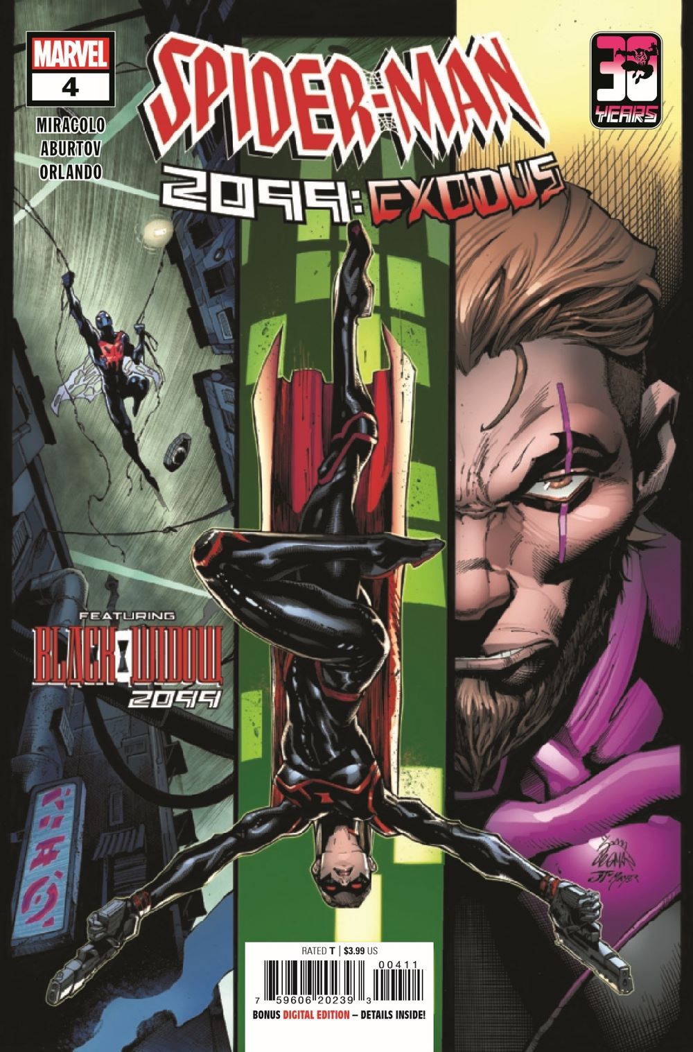 CAUGHT IN THE BLACK WIDOW 2099'S WEB! Without the BLACK CARDS that make them above the law, the CABAL are mortal. SPIDER-MAN decides to destroy the cards. But he can't do it alone. Only the BLACK WIDOW can find the mutant Spider-Man needs. But that mutant's already been targeted by someone else… It's BLACK WIDOW versus HAWKEYE…ROUND 2099!