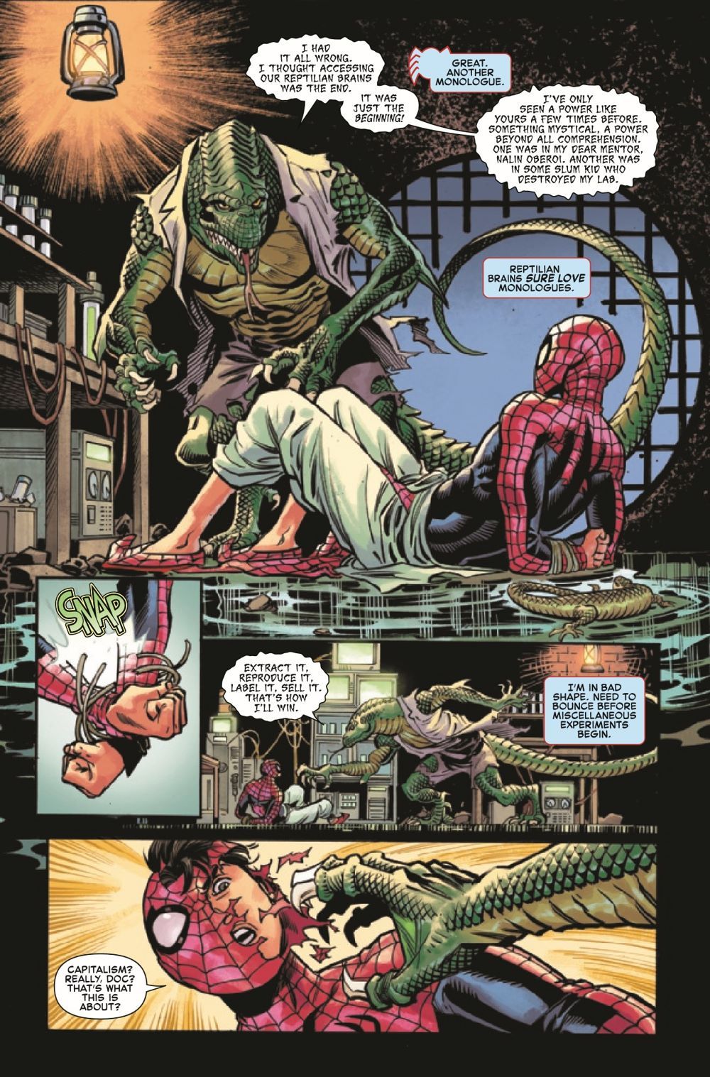 SPIDEY'S SAVIOR OR CERPENT DOOM?! SPIDER-MAN's final battle with the LIZARD puts all of Mumbai at risk - and the ravenous reptile's dangerous experiments have pushed the creature's powerful ally over the edge. Pavitr's one chance to save the city may rest with the last friends the wall-crawler ever thought he'd make!