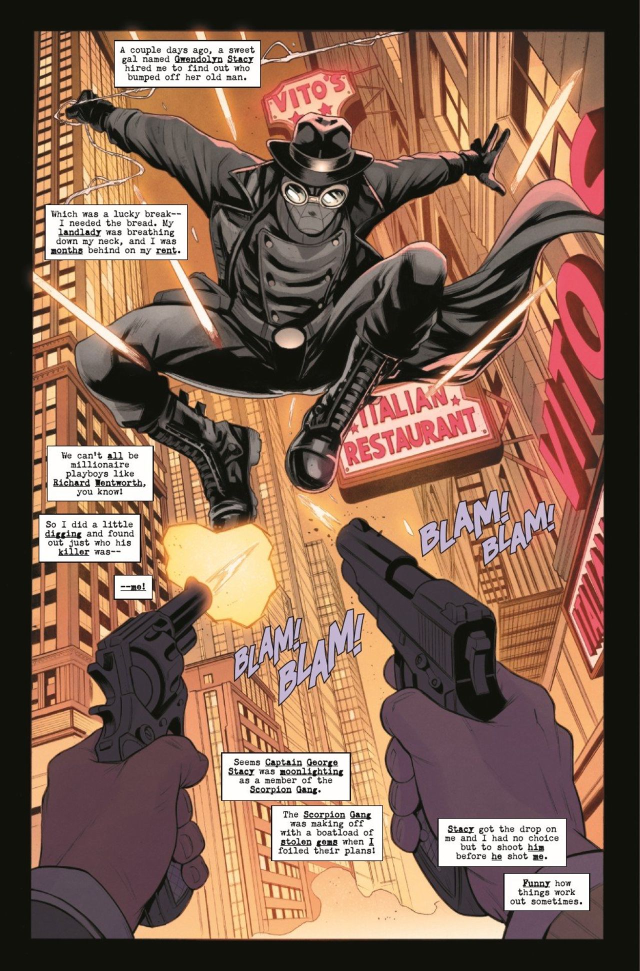 THE COLD CASE GETS HOT! The investigation into the death of George Stacy heats up, and Peter figures out the murderer's identity! Gwen Stacy isn't going to like it! But in the meantime, meet the newest Spider-Man Noir rogue - HARD BOIL!