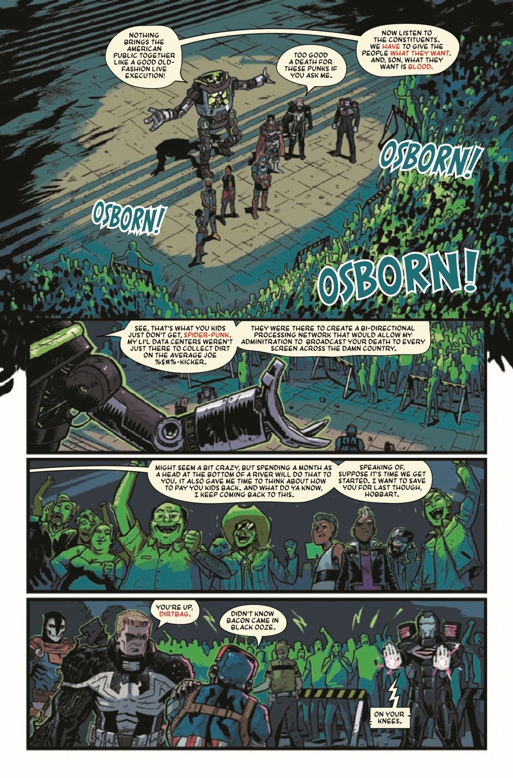 CLASH IN DC! The stage is set, the instruments tuned and everything is ready for the execution…EXECUTION?! Spider-Punk and his band of misfits better survive in time for an encore! ONE. MORE. SONG. ONE! MORE! SONG!