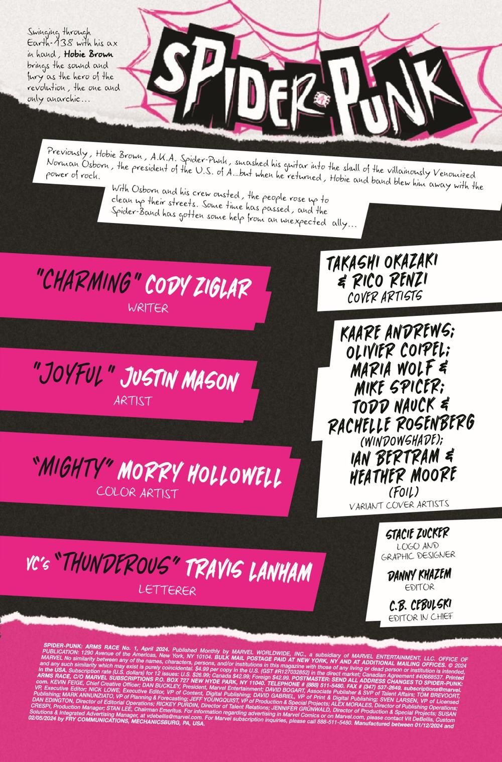 ANARCHY IN THE SPIDER-VERSE! SPIDER-PUNK GETS HIS OWN SERIES! HOBIE BROWN is THE ANARCHIC SPIDER-PUNK - set to protect EARTH-138 with his ax in hand and his chaotic band of punk rockin' heroes backing him! NORMAN OSBORN is dead, but will the chaos he's created be too much for Spider-Punk and gang to handle? Feel the vibes as CODY ZIGLAR (AMAZING SPIDER-MAN) and JUSTIN MASON bring you the jams when "BANNED IN DC" begins here!